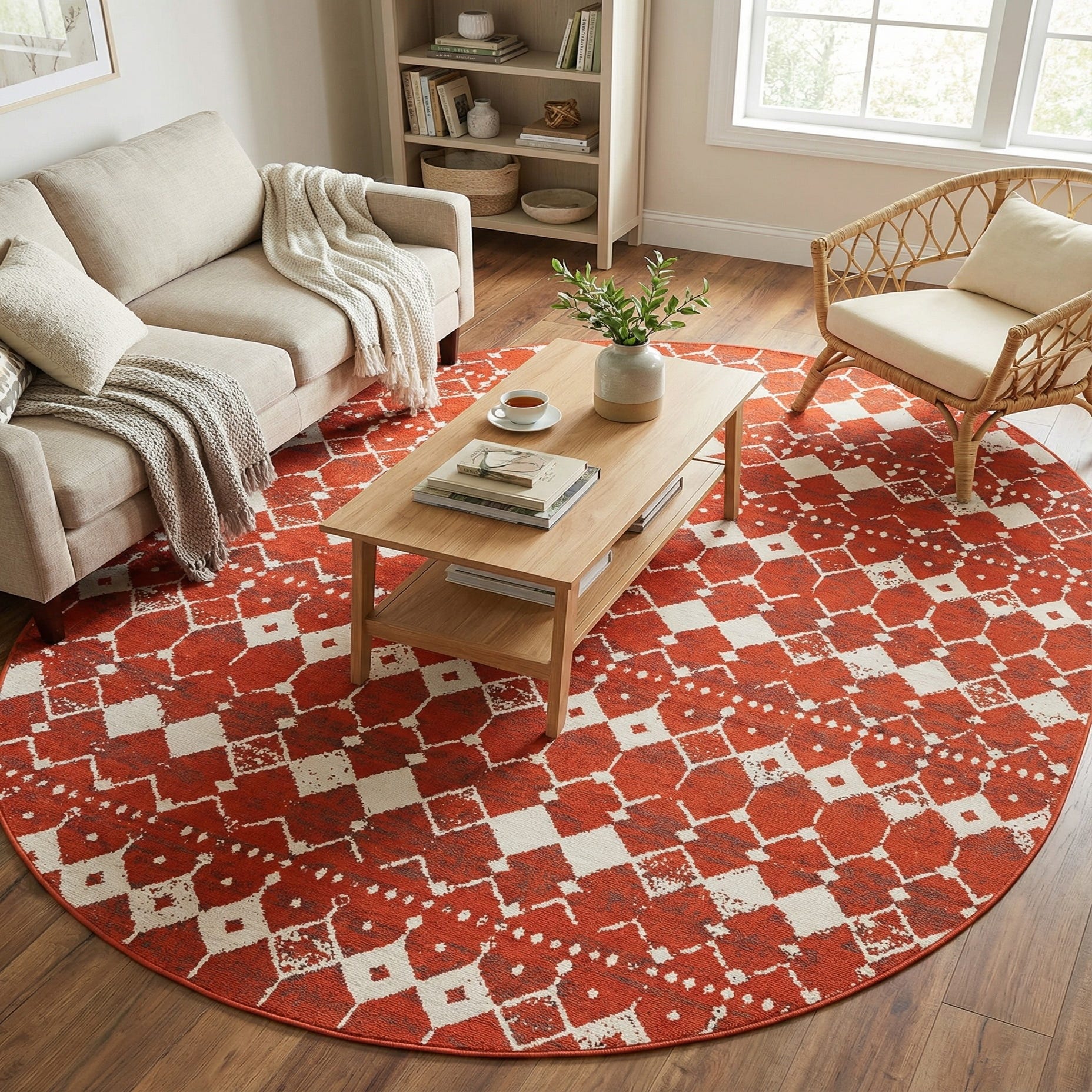 Primary image 7' 10 x 10'  Washable Trellis Indoor / Outdoor Oval Rug