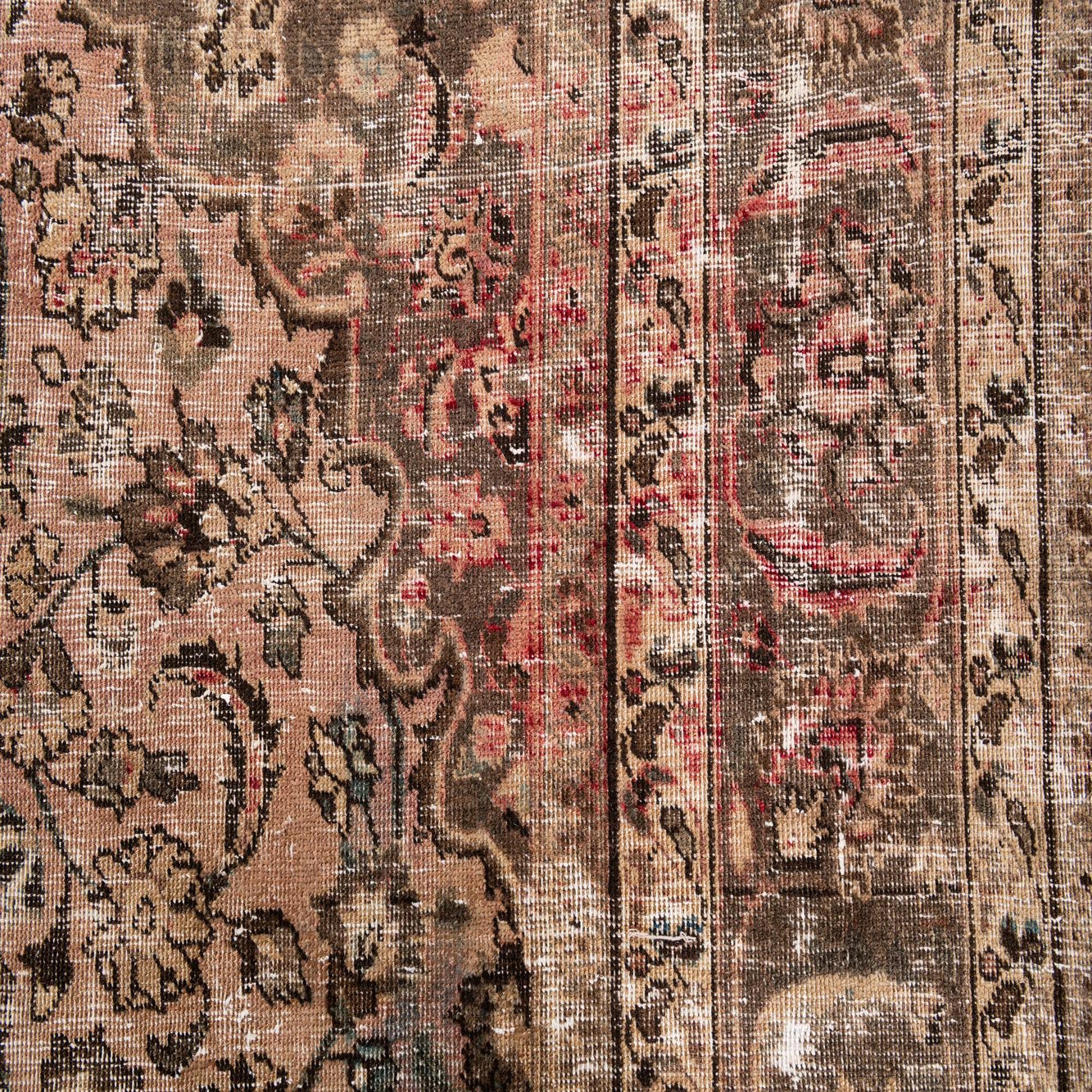 This Persian Ultra Vintage rug is an antique Persian Rug that has been washed, over-dyed, and then shaved down to a low pile. Look at the detail pictures to fully appreciate the uniqueness of this piece.