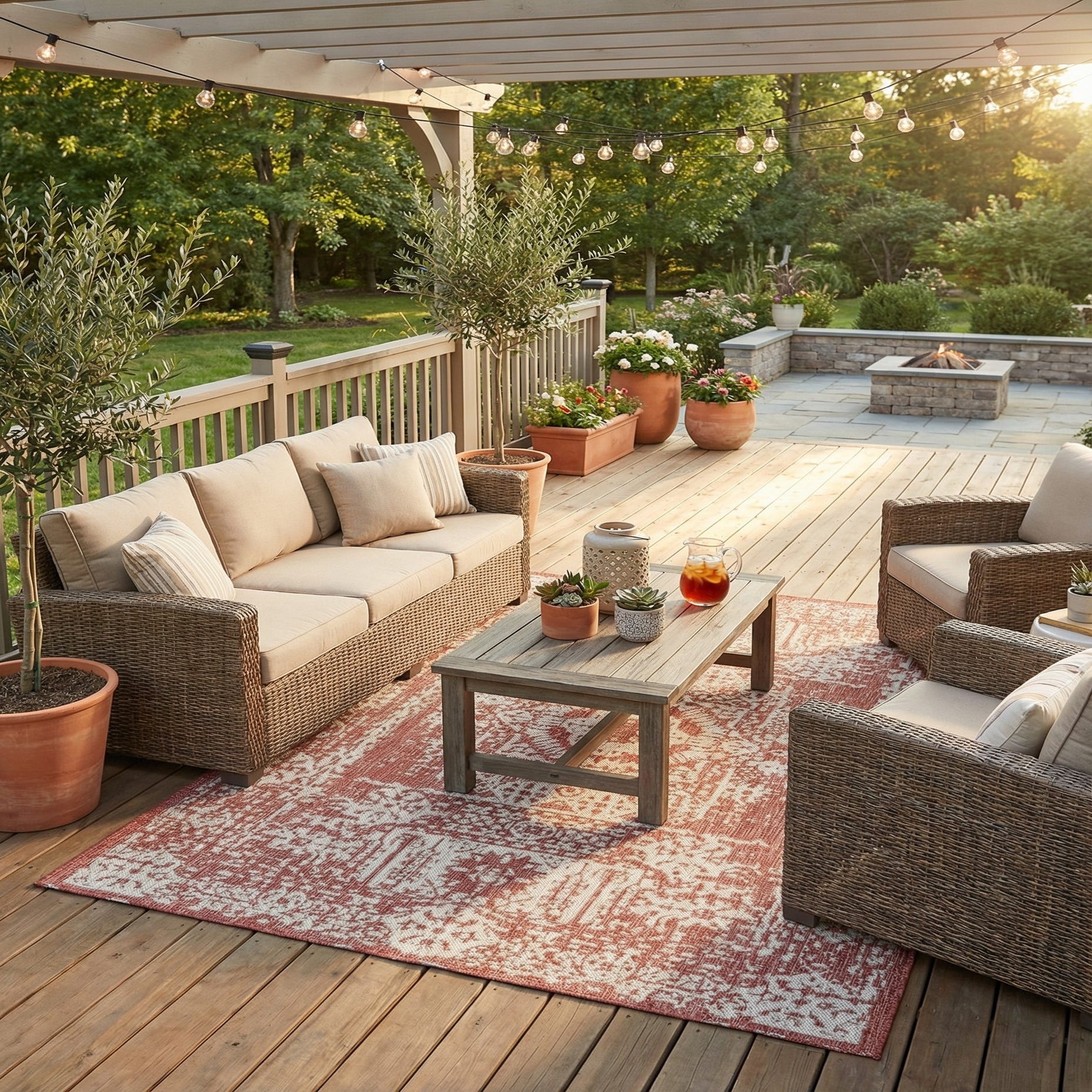 7' 10 x 11' Washable Traditional Indoor / Outdoor Rug