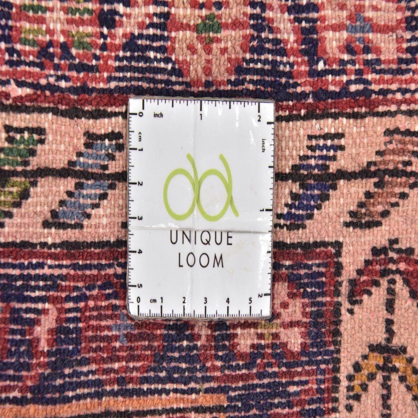 Primary color is Rust Red. Colors in this rug include: Rust Red, Black, Blue, Brown, Ivory, Pink.