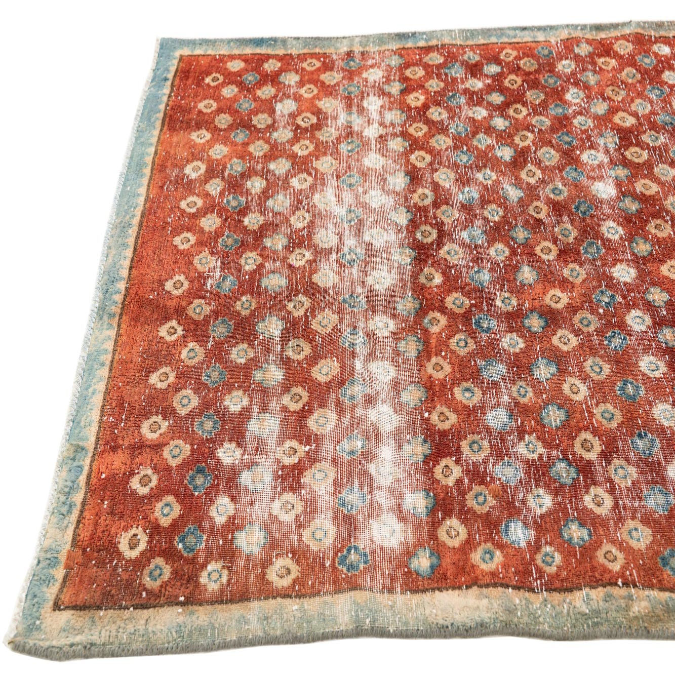 This Persian Ultra Vintage rug is an antique Persian Rug that has been washed, over-dyed, and then shaved down to a low pile. Look at the detail pictures to fully appreciate the uniqueness of this piece.