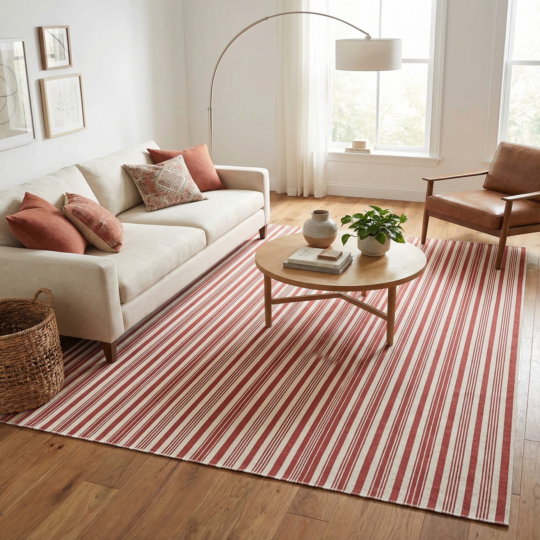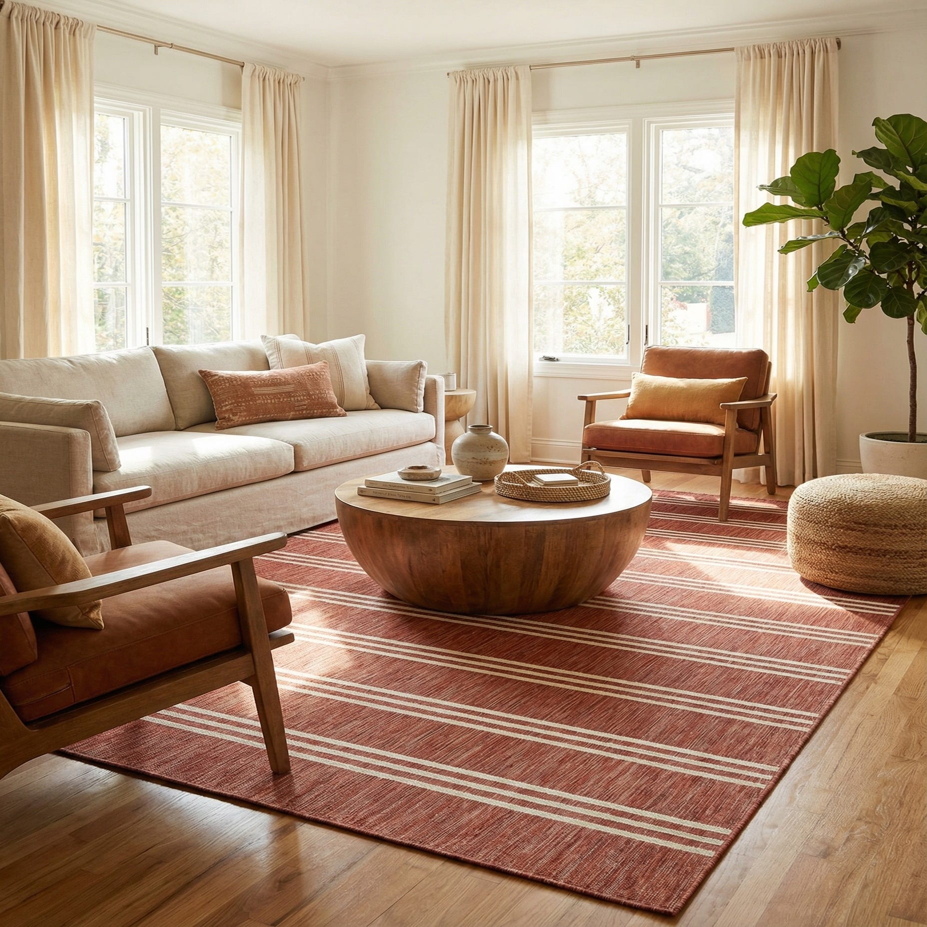Primary color is Rust Red. Colors in this rug include: Rust Red, Ivory.