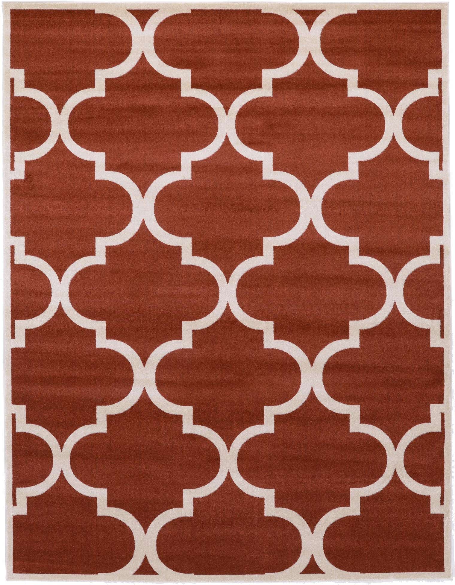 Primary color is Rust Red. Colors in this rug include: Rust Red, Beige.