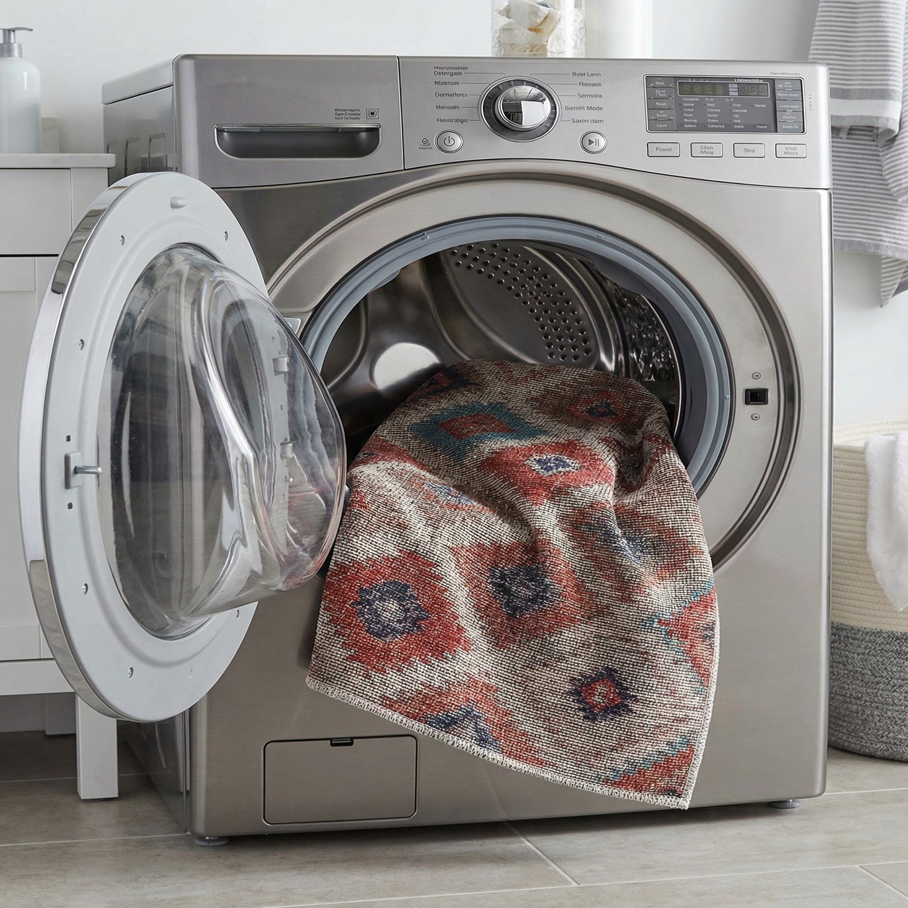 Primary color is Rust red and Beige. Colors in this rug include: Rust red and Beige, Brown, Navy Blue.