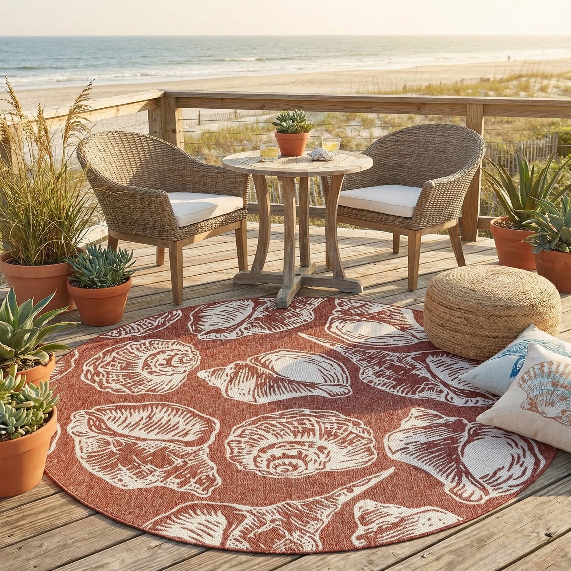 7' 10 x 7' 10 Washable Coastal Indoor / Outdoor Round Rug