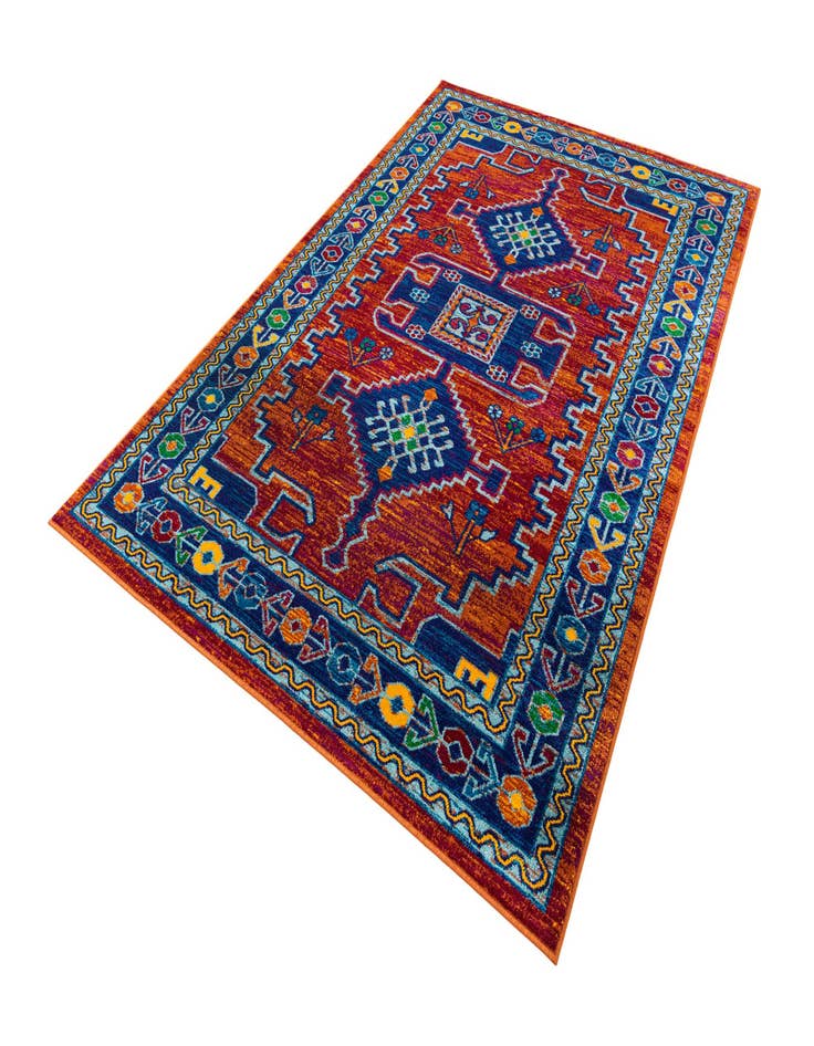 Primary color is Rust Red Blue. Colors in this rug include: Rust Red Blue, Blue, Light Blue, Green, Navy Blue, Red, Yellow, Pink.