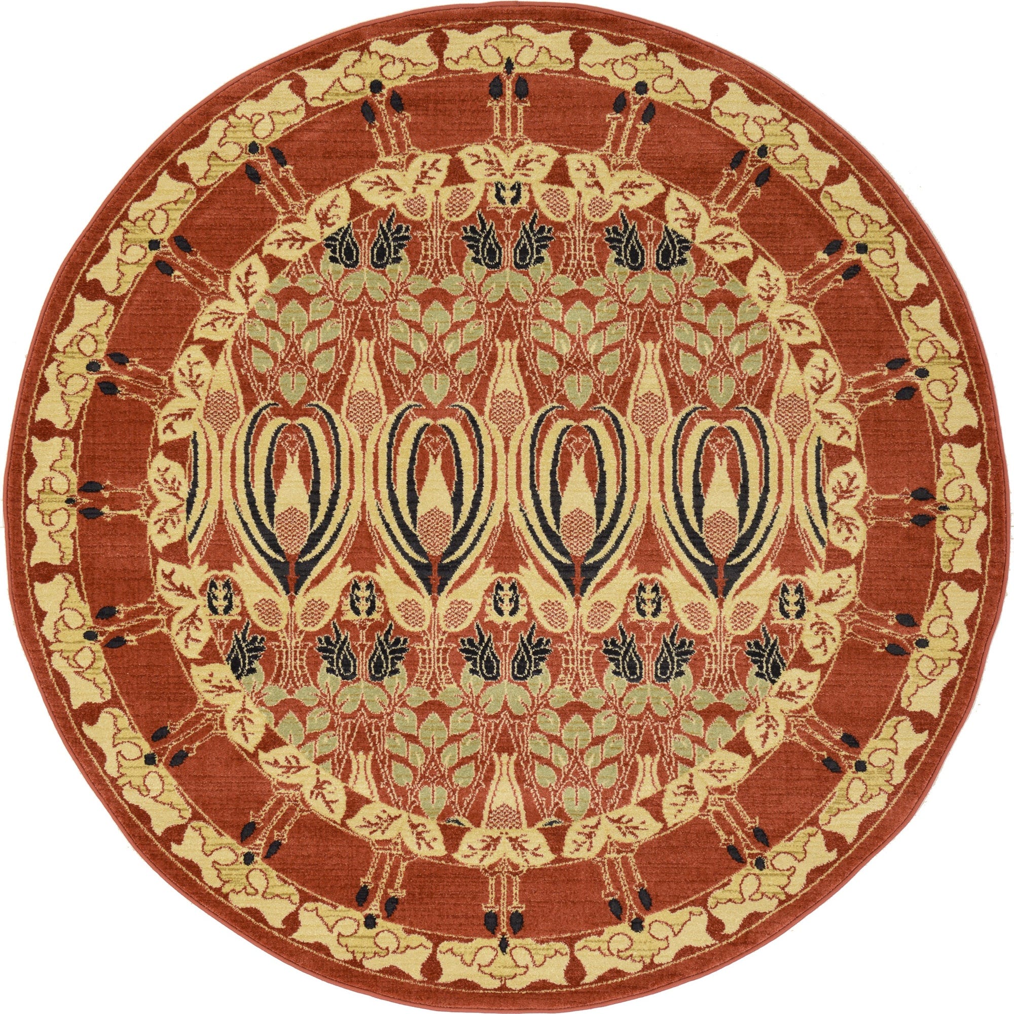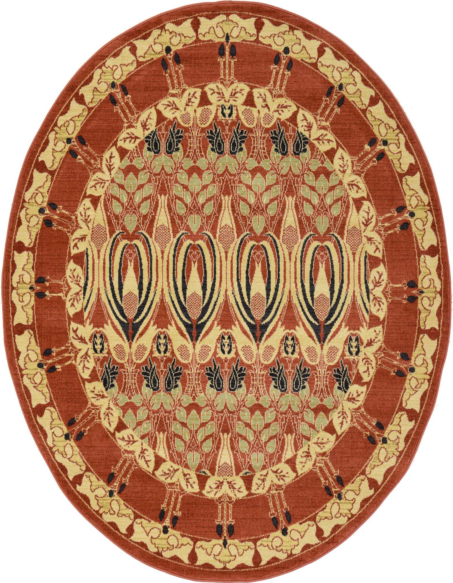 Primary color is Rust Red. Colors in this rug include: Rust Red, Beige, Black, Red, Olive, Light Green.