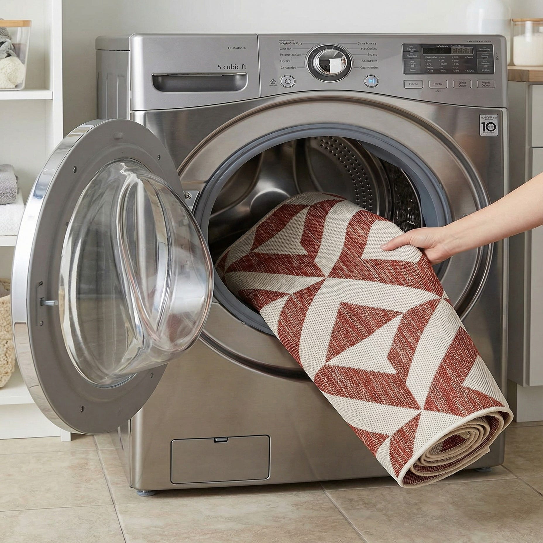 Primary color is Rust Red. Colors in this rug include: Rust Red, Ivory.