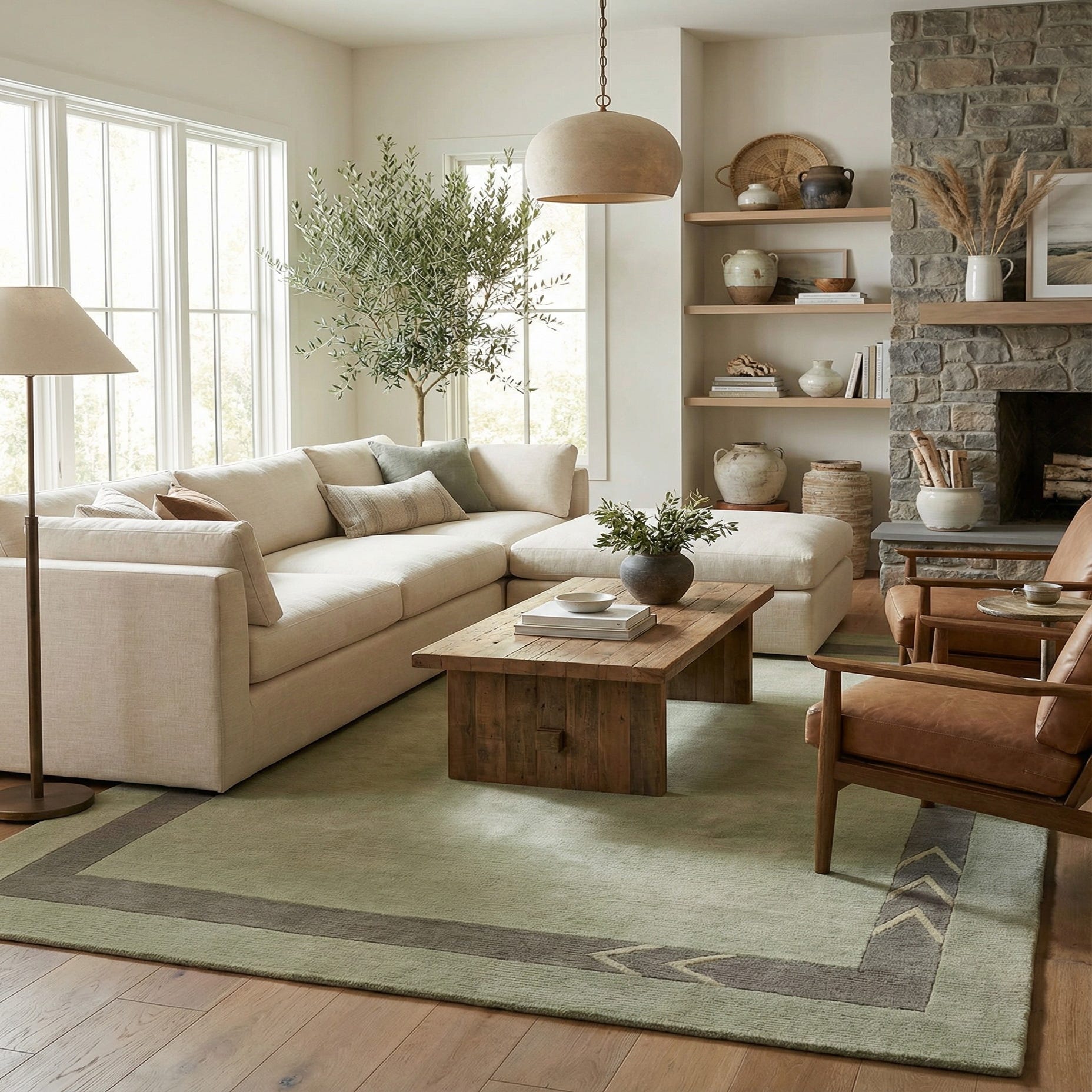 Primary color is Sage Green. Colors in this rug include: Sage Green, Gray.