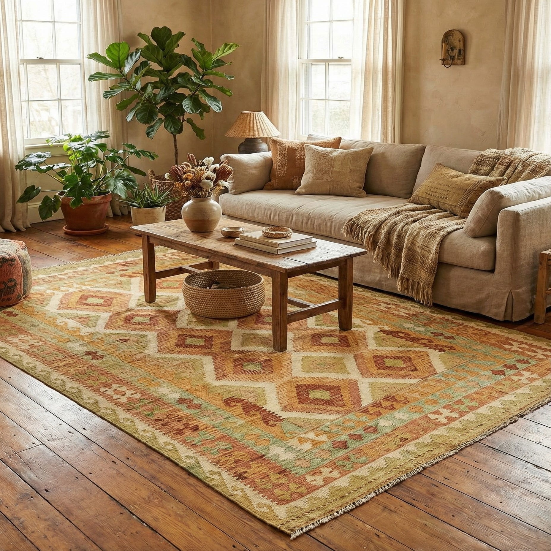 4' 9 x 6' 8 Hand Woven Kilim Waziri Wool Rug
