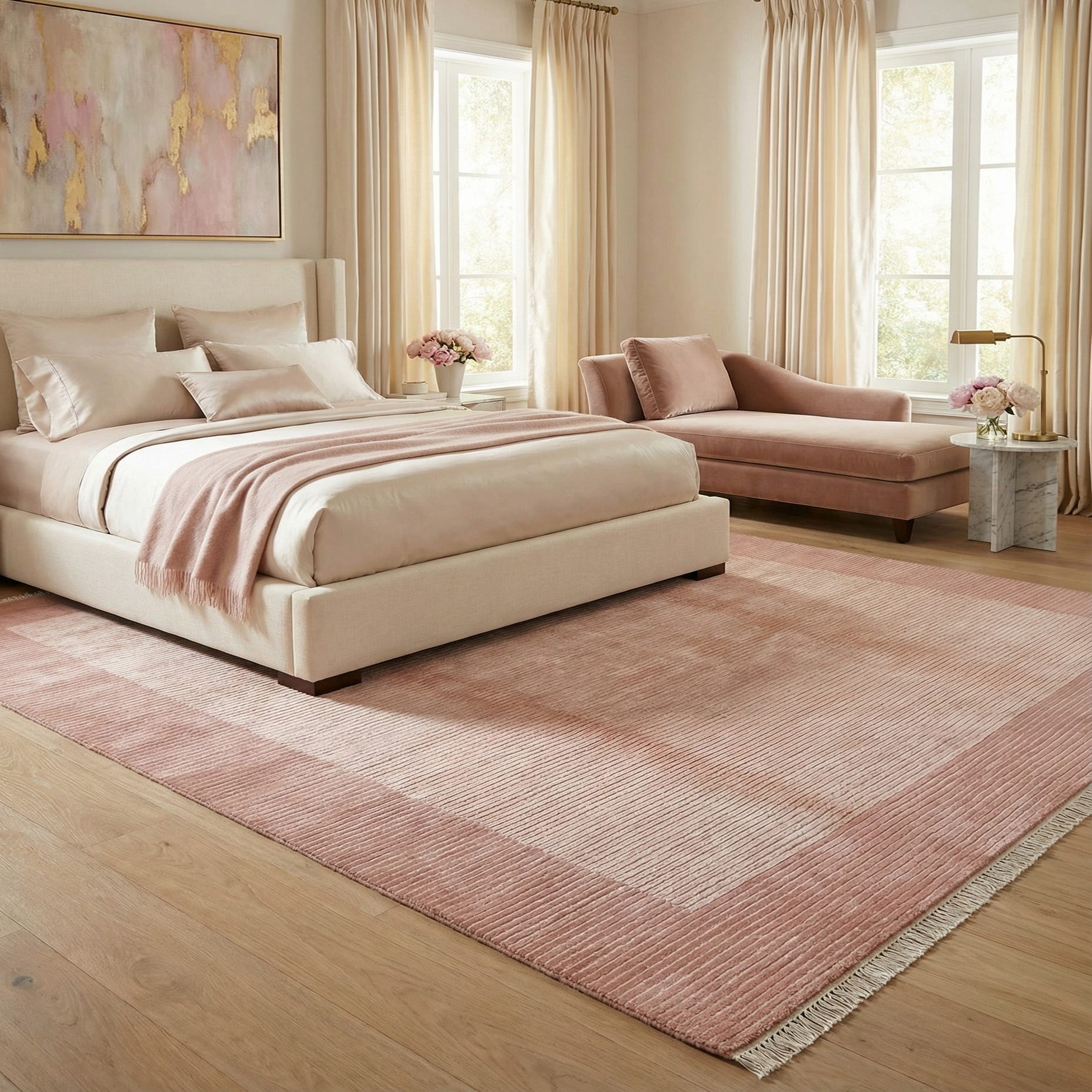 Primary color is Salmon. Colors in this rug include: Salmon, Light Salmon.