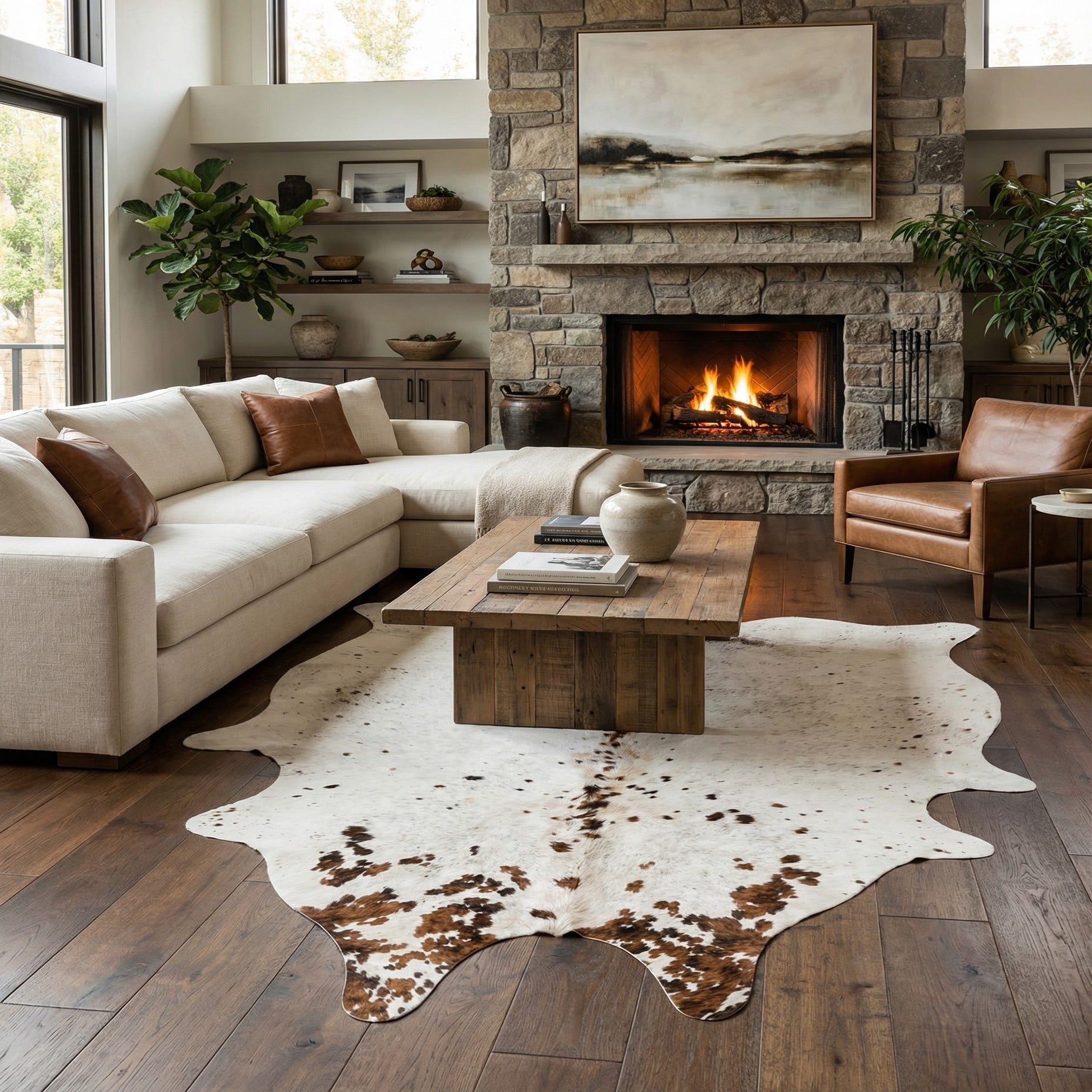 5' 1 x 6' 2 Cowhide Leather Square Rug