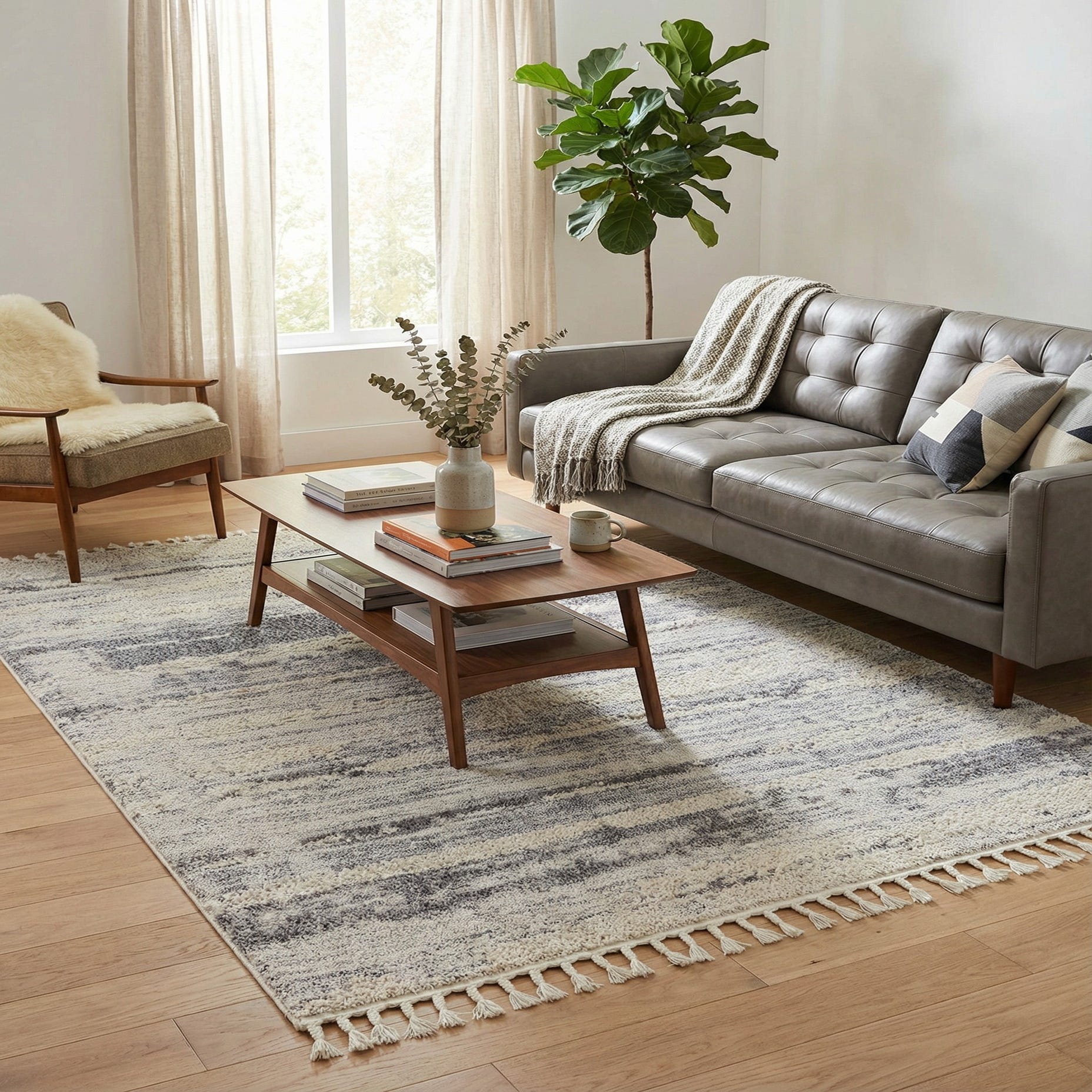 Primary color is Sand. Colors in this rug include: Sand, Gray.
