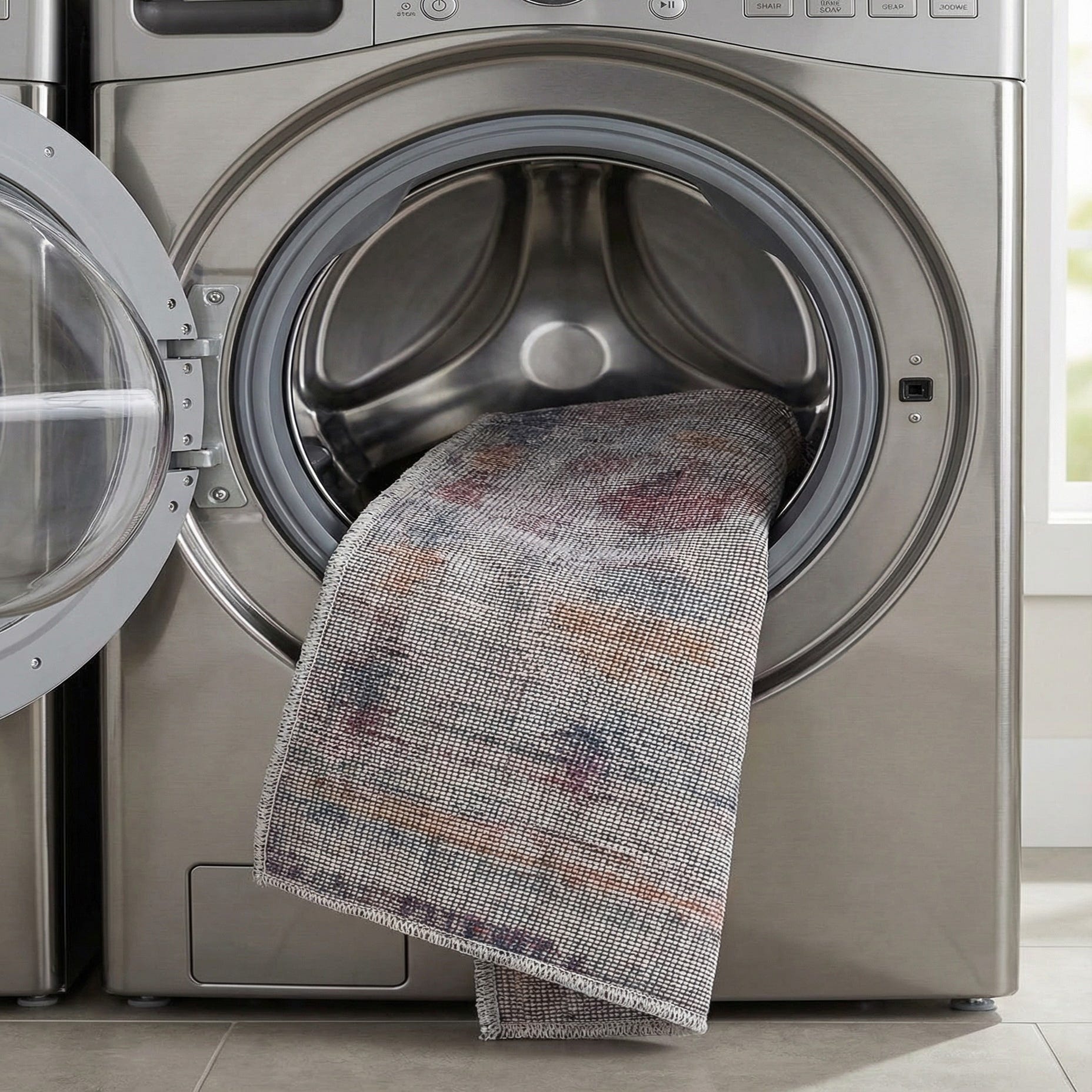 Primary color is Sandy and Ivory. Colors in this rug include: Sandy and Ivory, Brown, Burgundy, Gray, Navy Blue.