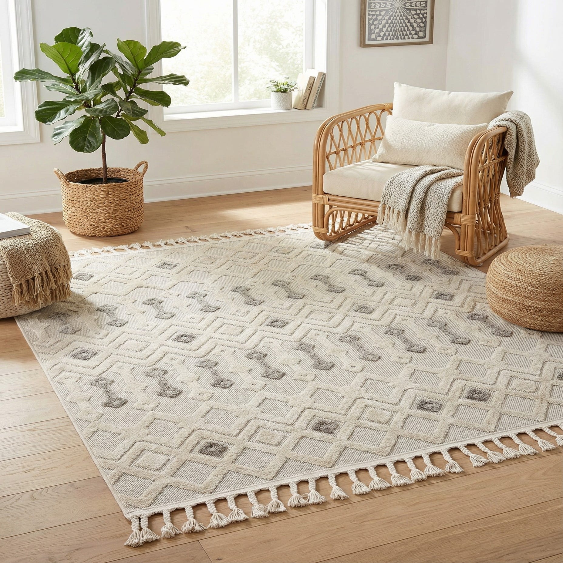 Primary color is Sandy Beige. Colors in this rug include: Sandy Beige, Beige, Gray.