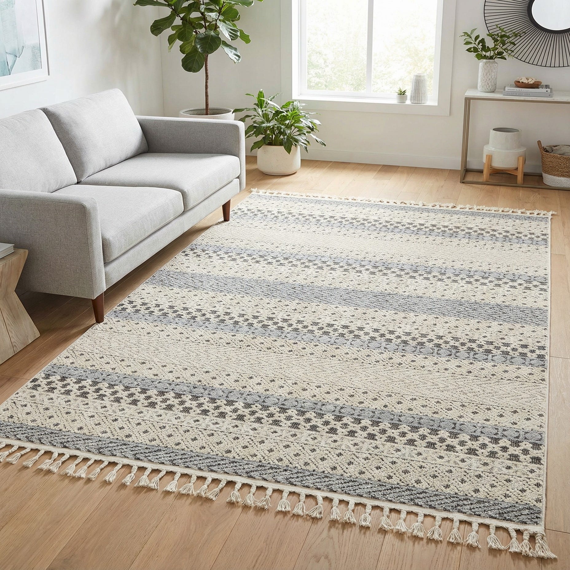 Primary color is Sandy Beige. Colors in this rug include: Sandy Beige, Beige, Gray.