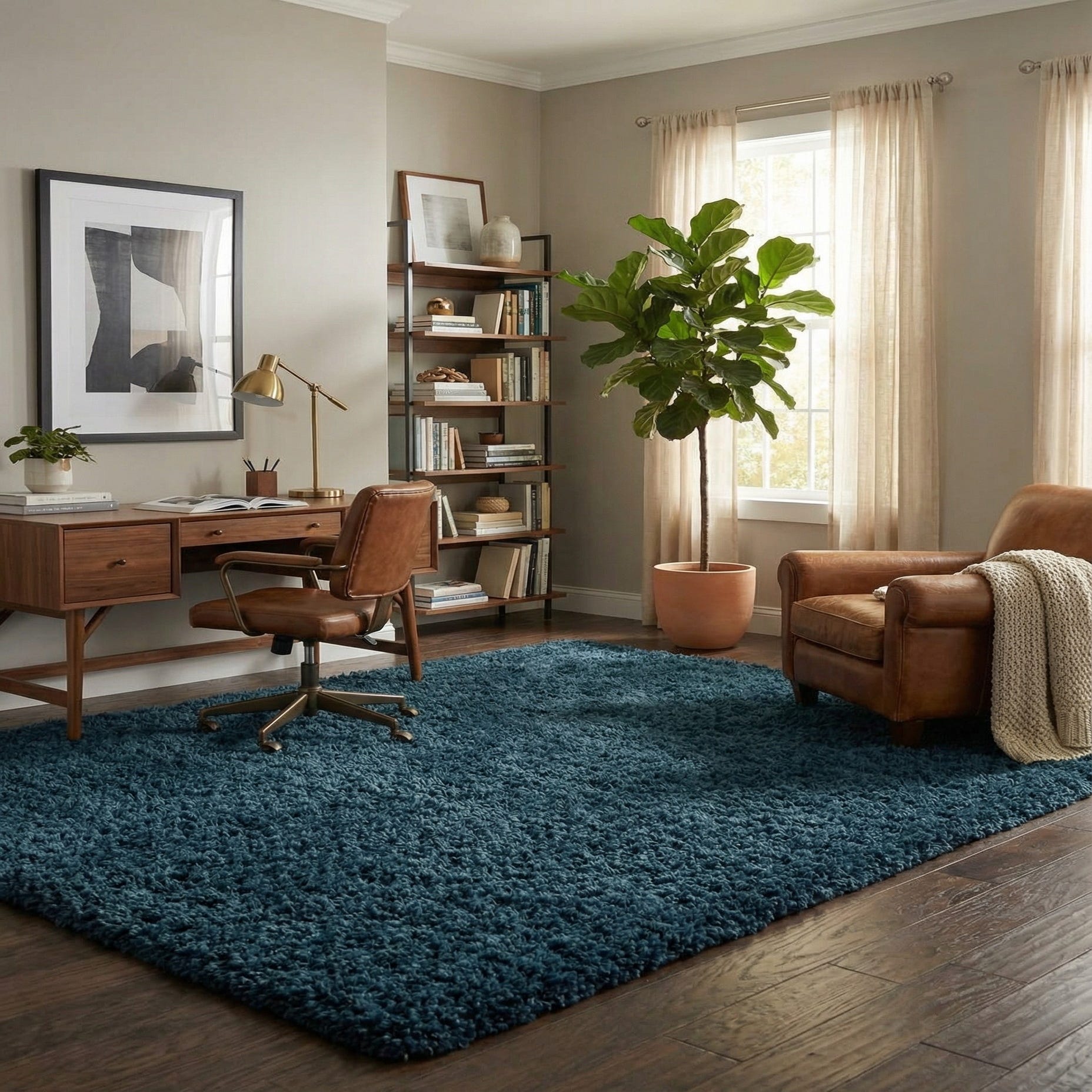 Primary color is Sapphire Blue. Colors in this rug include: Sapphire Blue, Navy Blue.