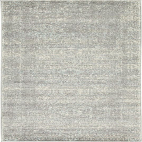 Primary color is Silver. Colors in this rug include: Silver, Blue, Gray, Ivory.
