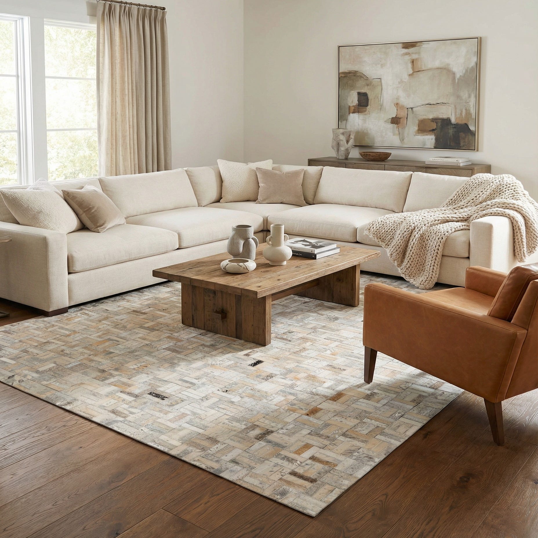 5' x 8' Cowhide Leather Rug
