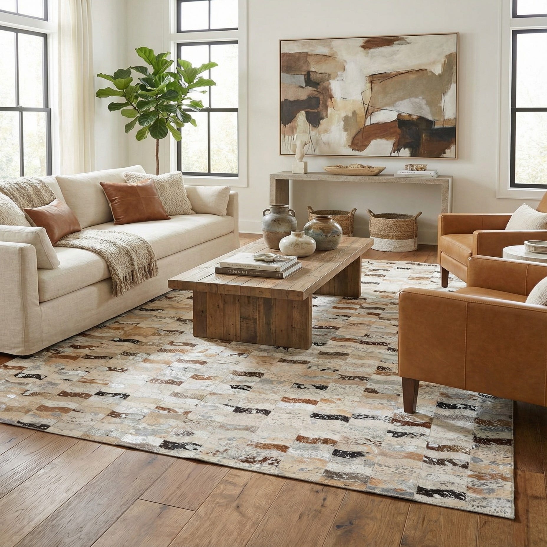 5' x 7' 10 Cowhide Leather Rug