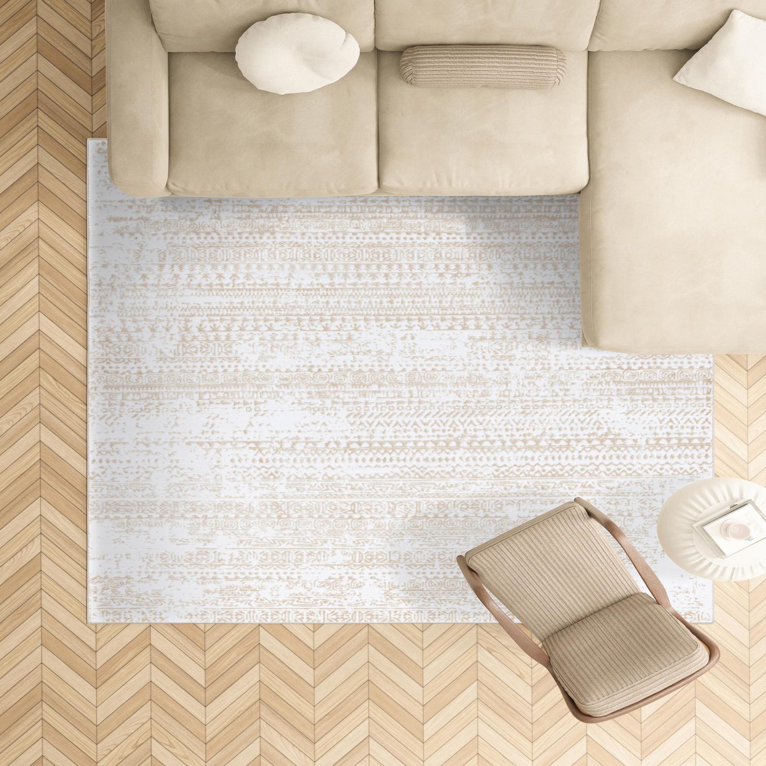 Primary color is Snow White. Colors in this rug include: Snow White, Beige.