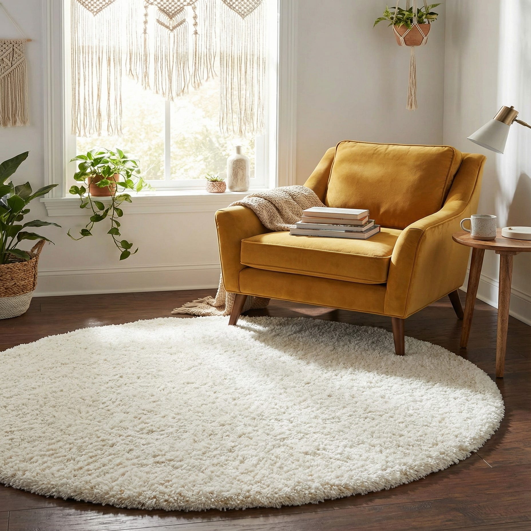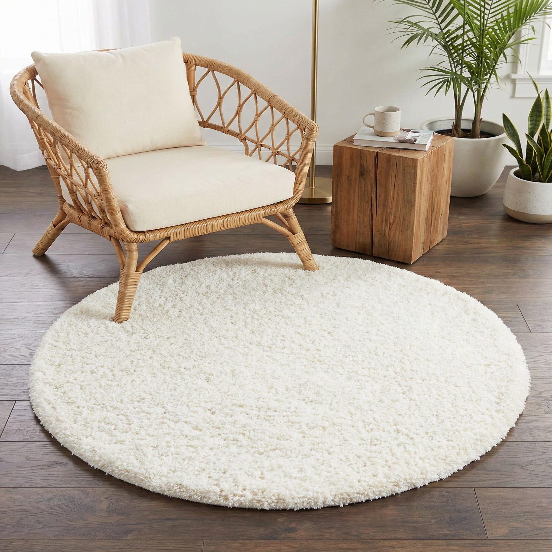 4' x 4' Solid Shag Round Rug