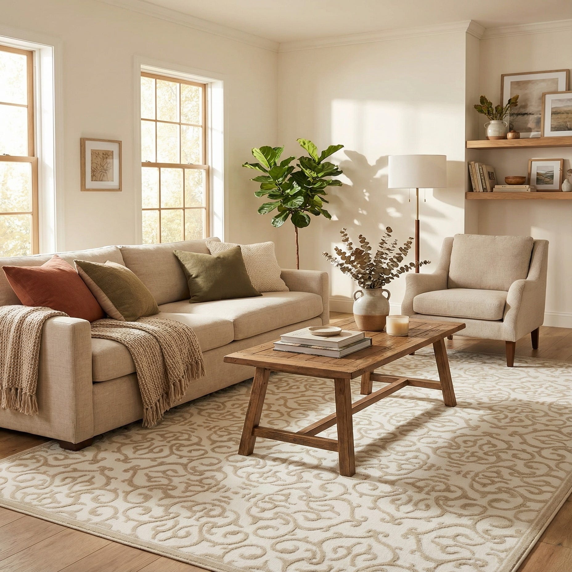 Primary color is Snow White. Colors in this rug include: Snow White, Beige.