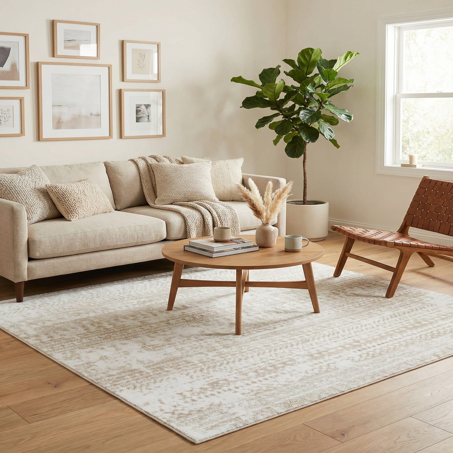 Primary color is Snow White. Colors in this rug include: Snow White, Beige.