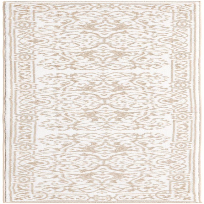 Primary color is Snow White. Colors in this rug include: Snow White, Beige.