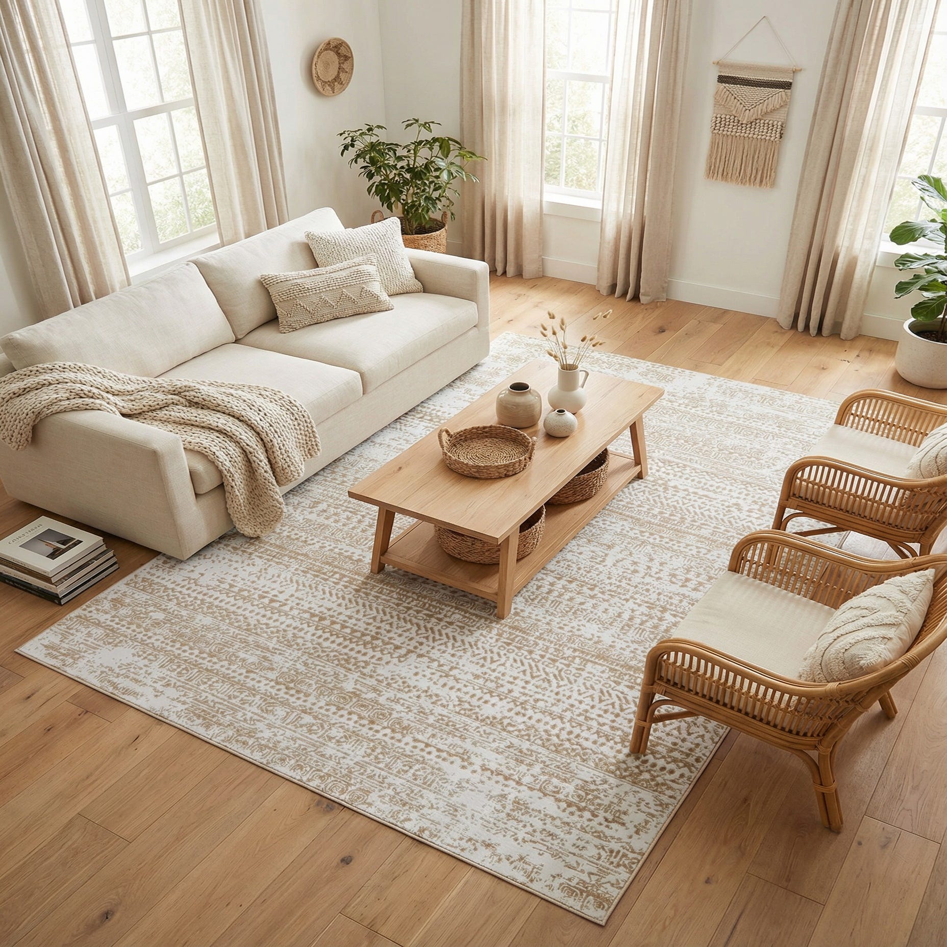 Primary color is Snow White. Colors in this rug include: Snow White, Beige.