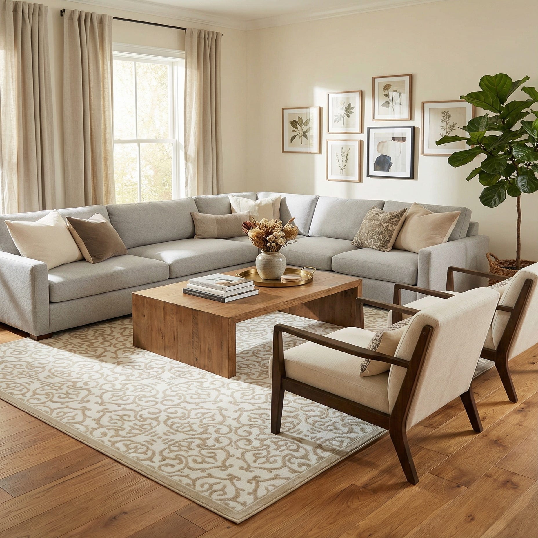 Primary color is Snow White. Colors in this rug include: Snow White, Beige.