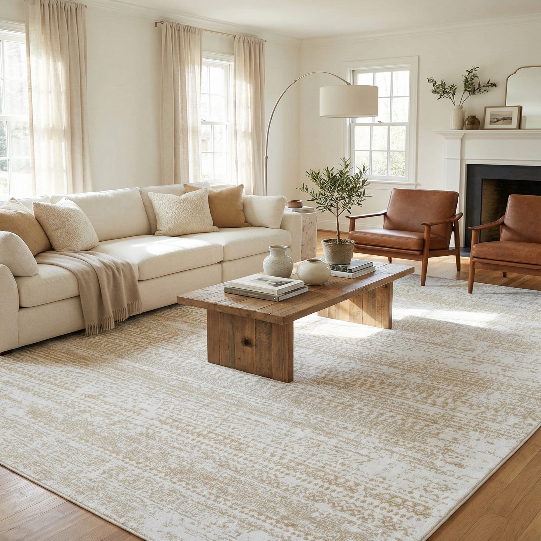 Primary color is Snow White. Colors in this rug include: Snow White, Beige.