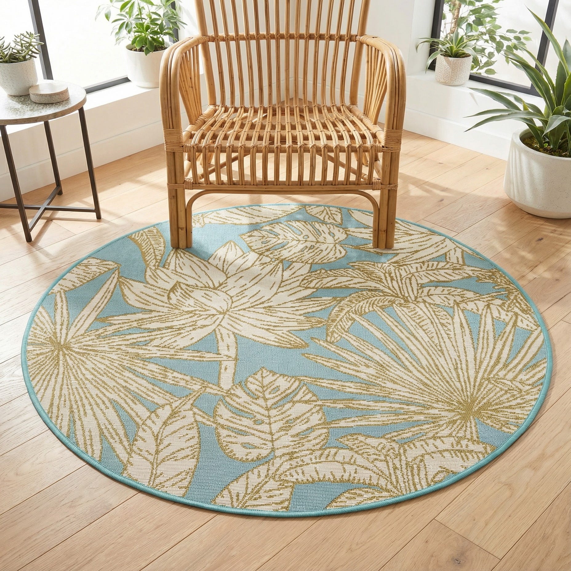 3' x 3' Washable Botanical Indoor / Outdoor Round Rug