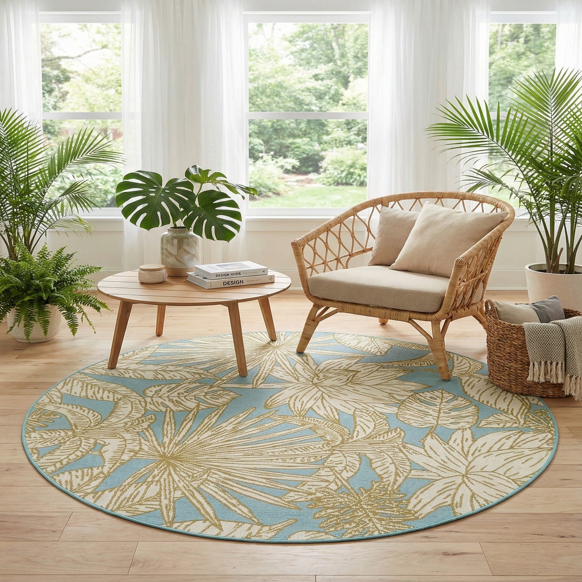 5' x 5' Washable Botanical Indoor / Outdoor Round Rug