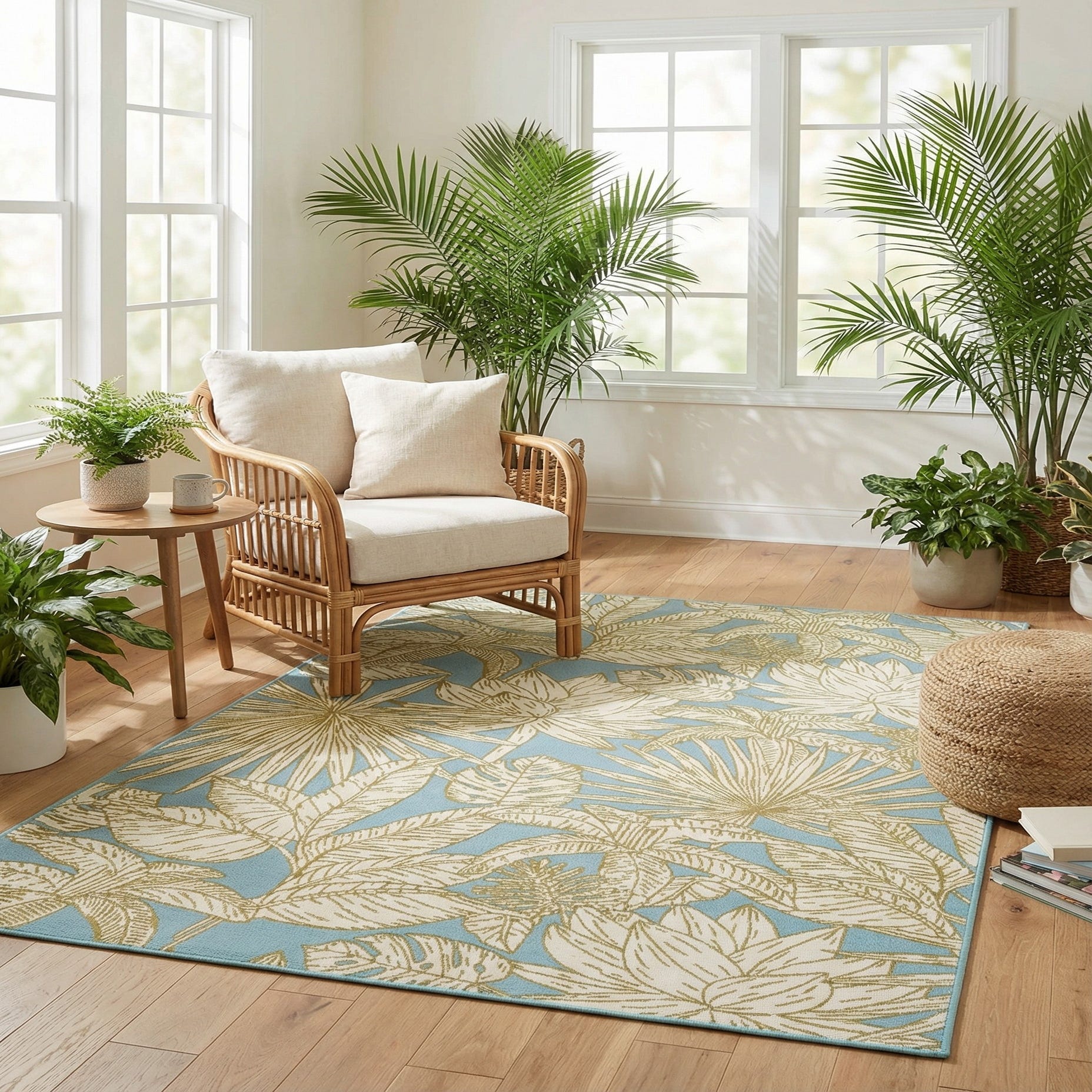 5' x 8' Washable Botanical Indoor / Outdoor Rug