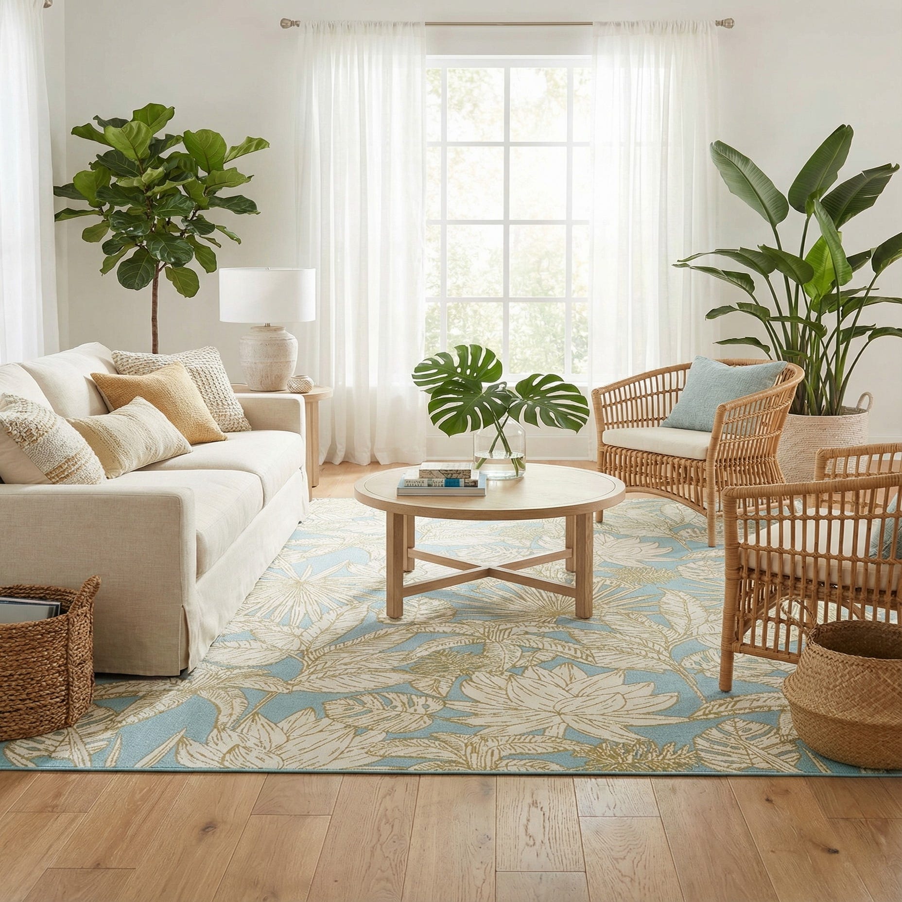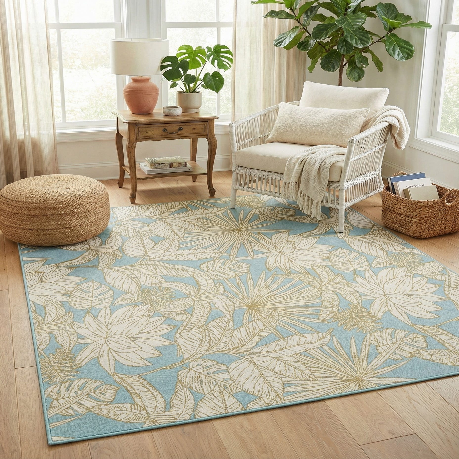 7' 10 x 10' Washable Botanical Indoor / Outdoor Rug