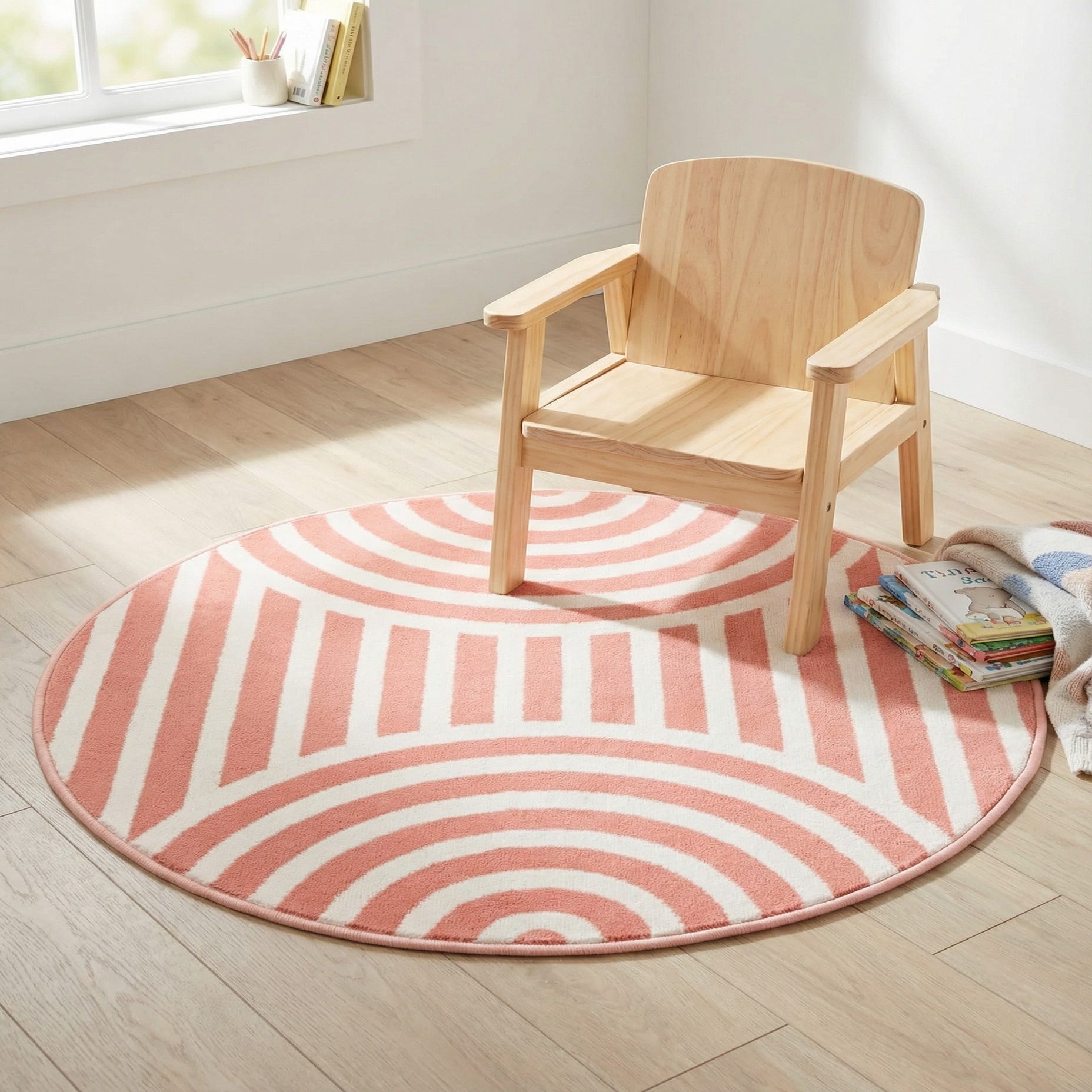 Primary color is Soft Coral Pink. Colors in this rug include: Soft Coral Pink, Ivory.