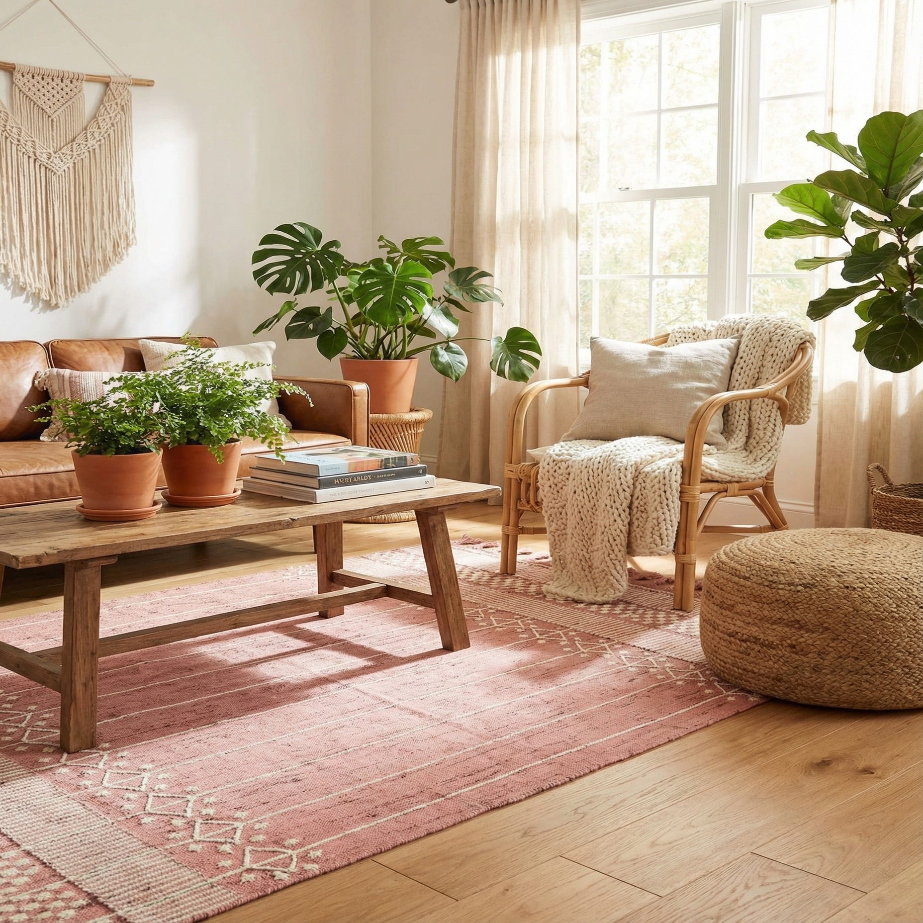 Primary color is SOFT PINK. Colors in this rug include: SOFT PINK, Ivory.
