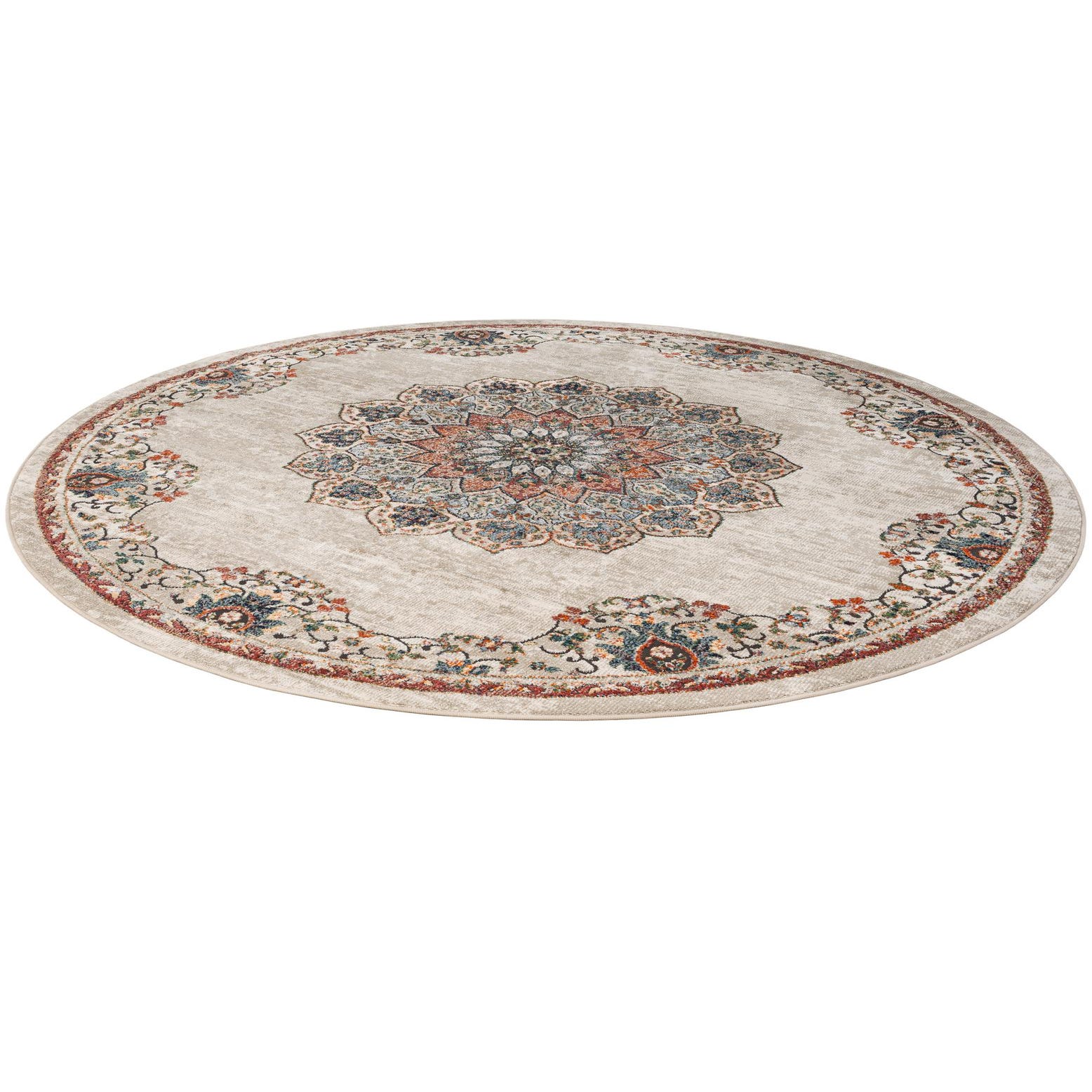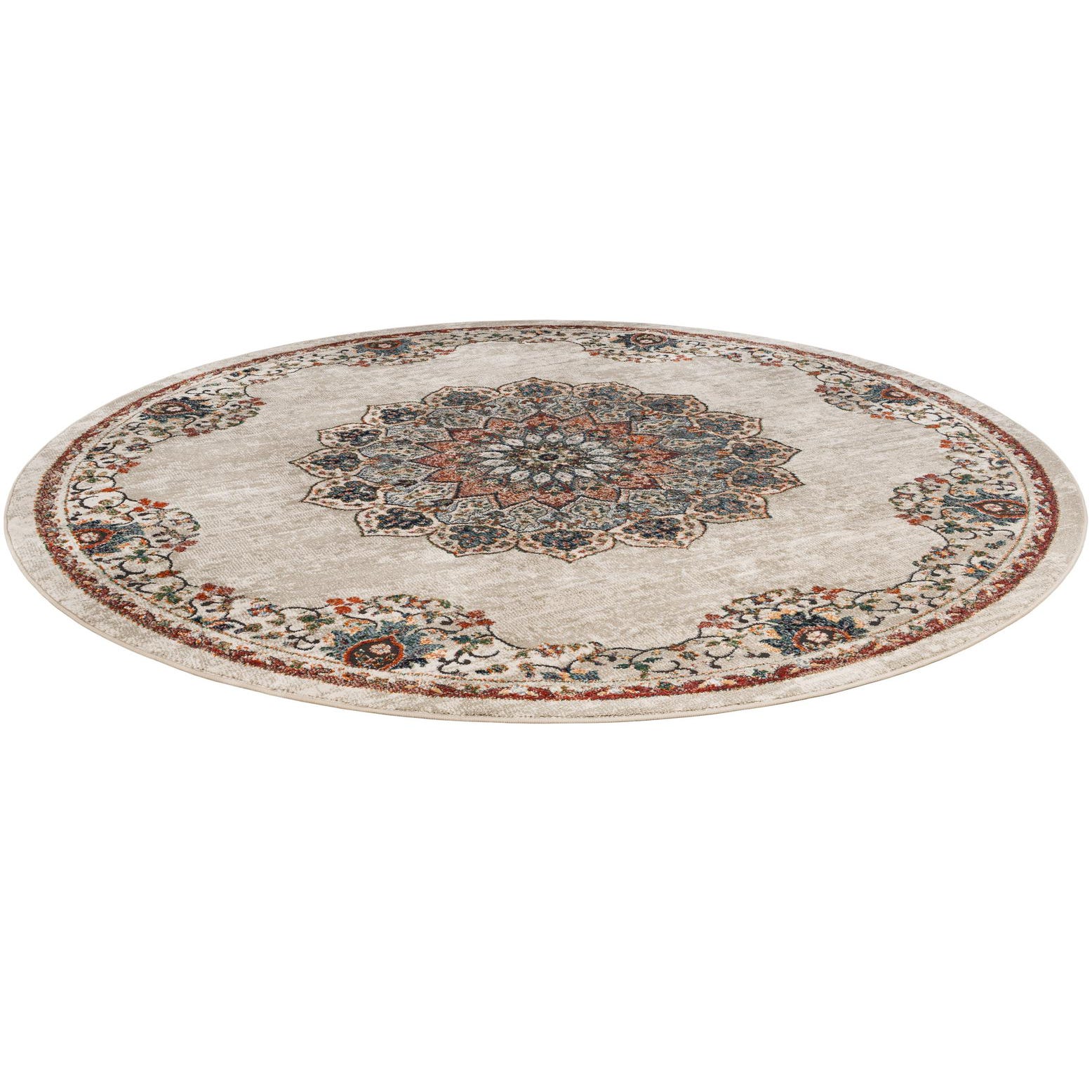 Primary color is Stone Beige. Colors in this rug include: Stone Beige, Beige, Black, Blue, Brown, Green, Ivory, Light Brown, Orange, Navy Blue, Red, Rust Red.