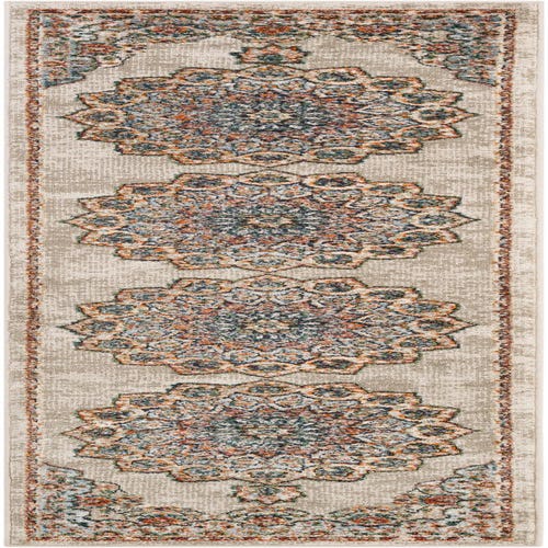Primary color is Stone Beige. Colors in this rug include: Stone Beige, Beige, Black, Blue, Gray, Green, Ivory, Light Brown, Navy Blue, Red, Rust Red.