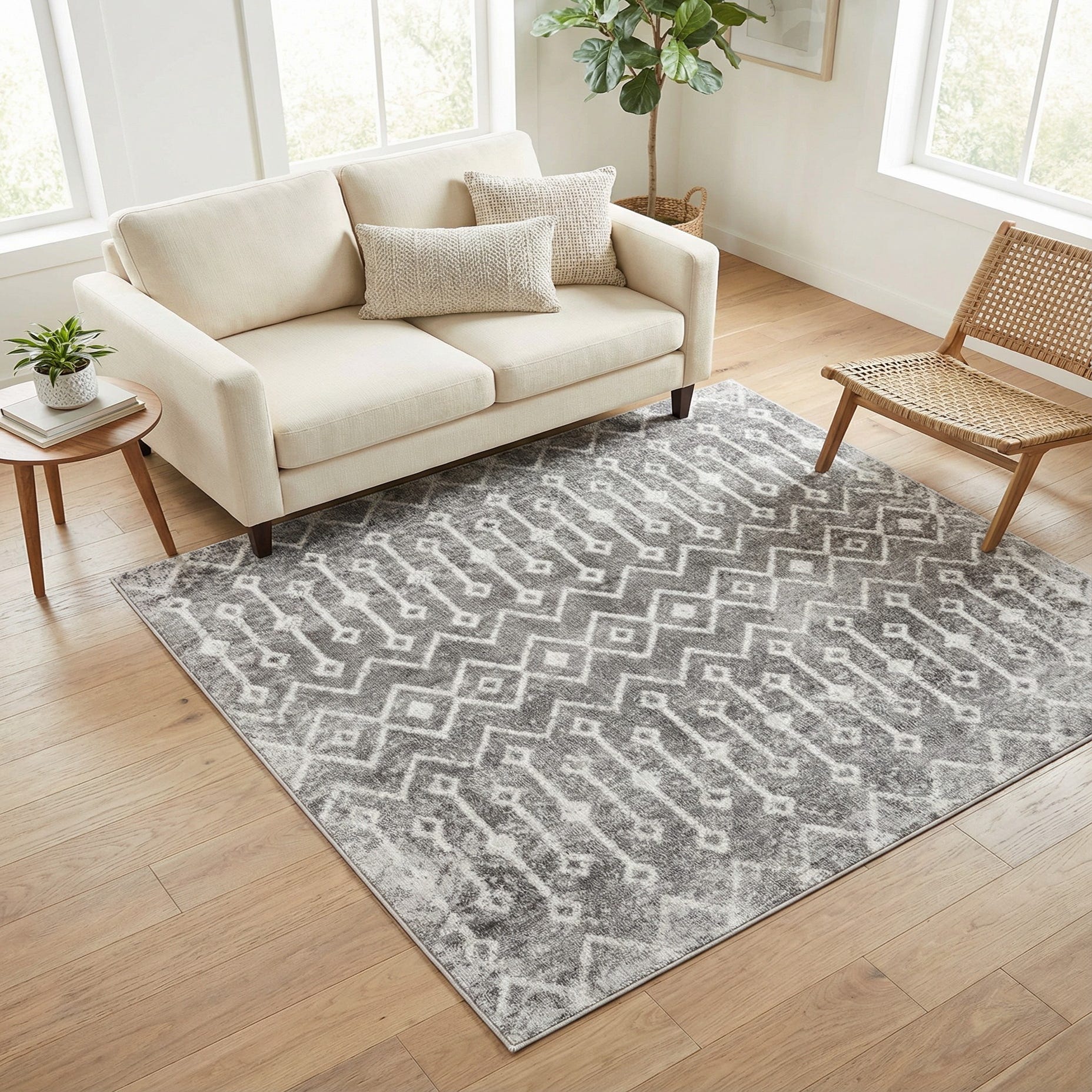 Primary color is Stone Gray. Colors in this rug include: Stone Gray, Ivory.
