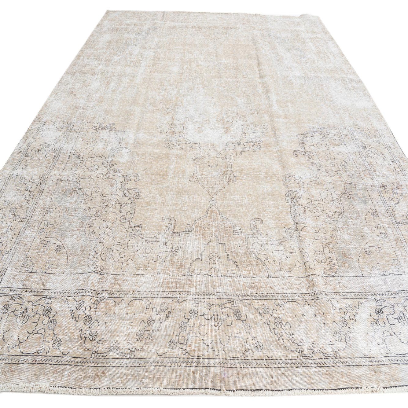 This Persian Ultra Vintage rug is an antique Persian Rug that has been washed, over-dyed, and then shaved down to a low pile. Look at the detail pictures to fully appreciate the uniqueness of this piece.