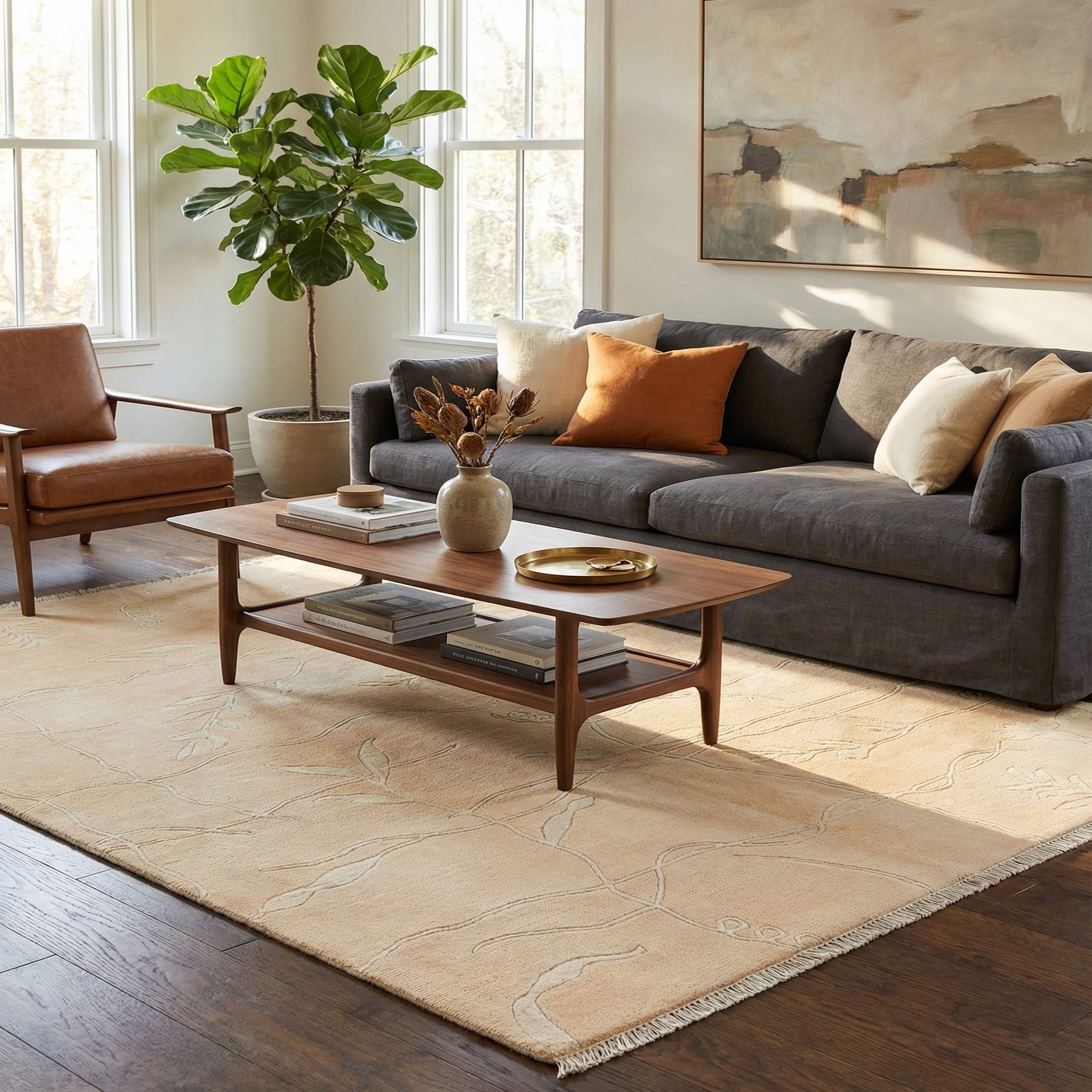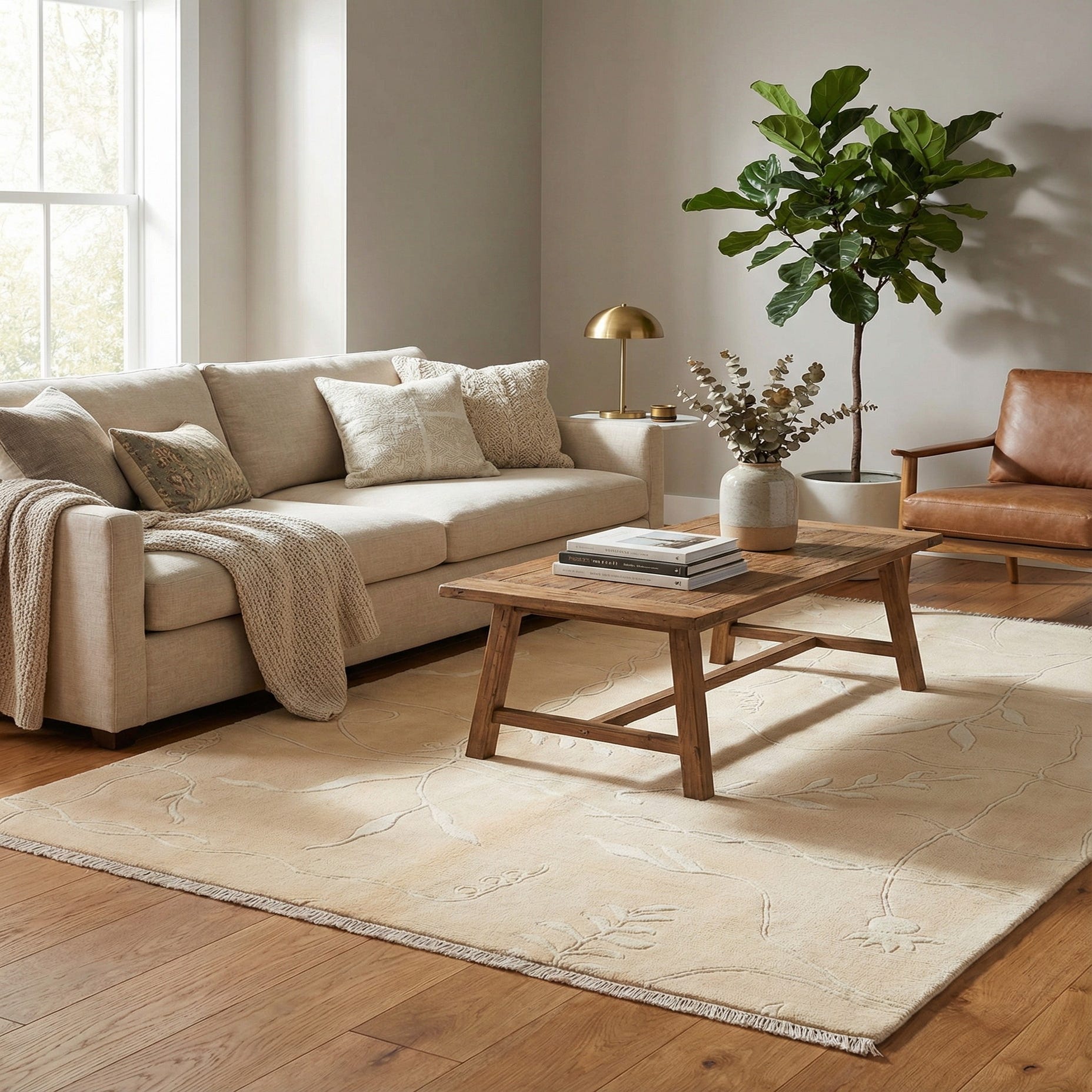 Primary color is Tan. Colors in this rug include: Tan, Light Brown.