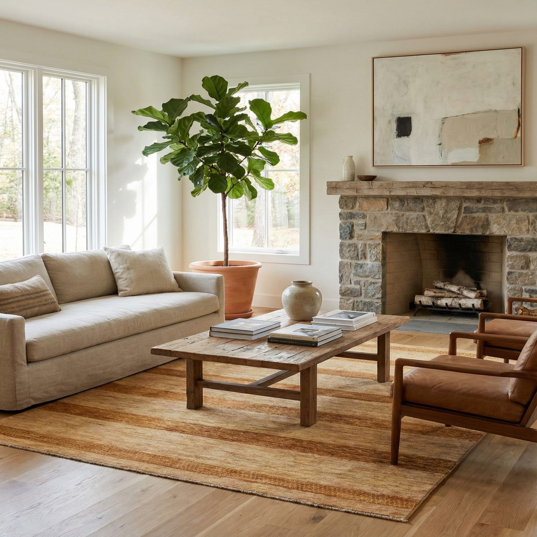 Primary color is Tan. Colors in this rug include: Tan, Brown.