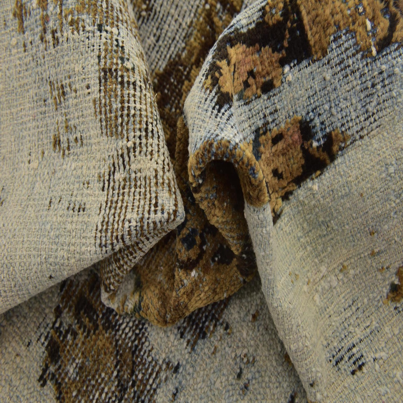 This Persian Ultra Vintage rug is an antique Persian Rug that has been washed, over-dyed, and then shaved down to a low pile. Look at the detail pictures to fully appreciate the uniqueness of this piece.