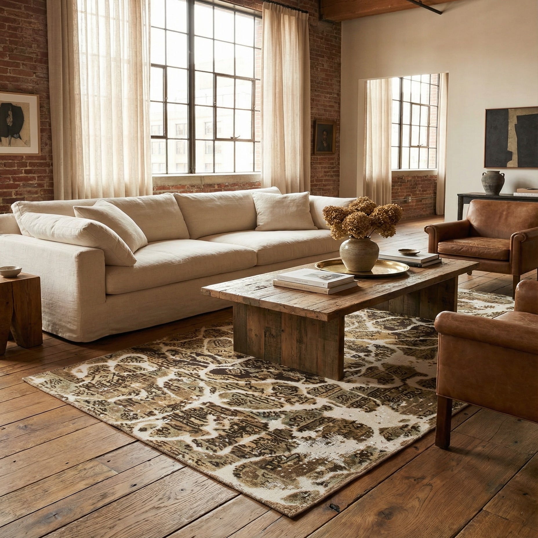 Primary color is Tan. Colors in this rug include: Tan, Brown, Light Brown, Olive.