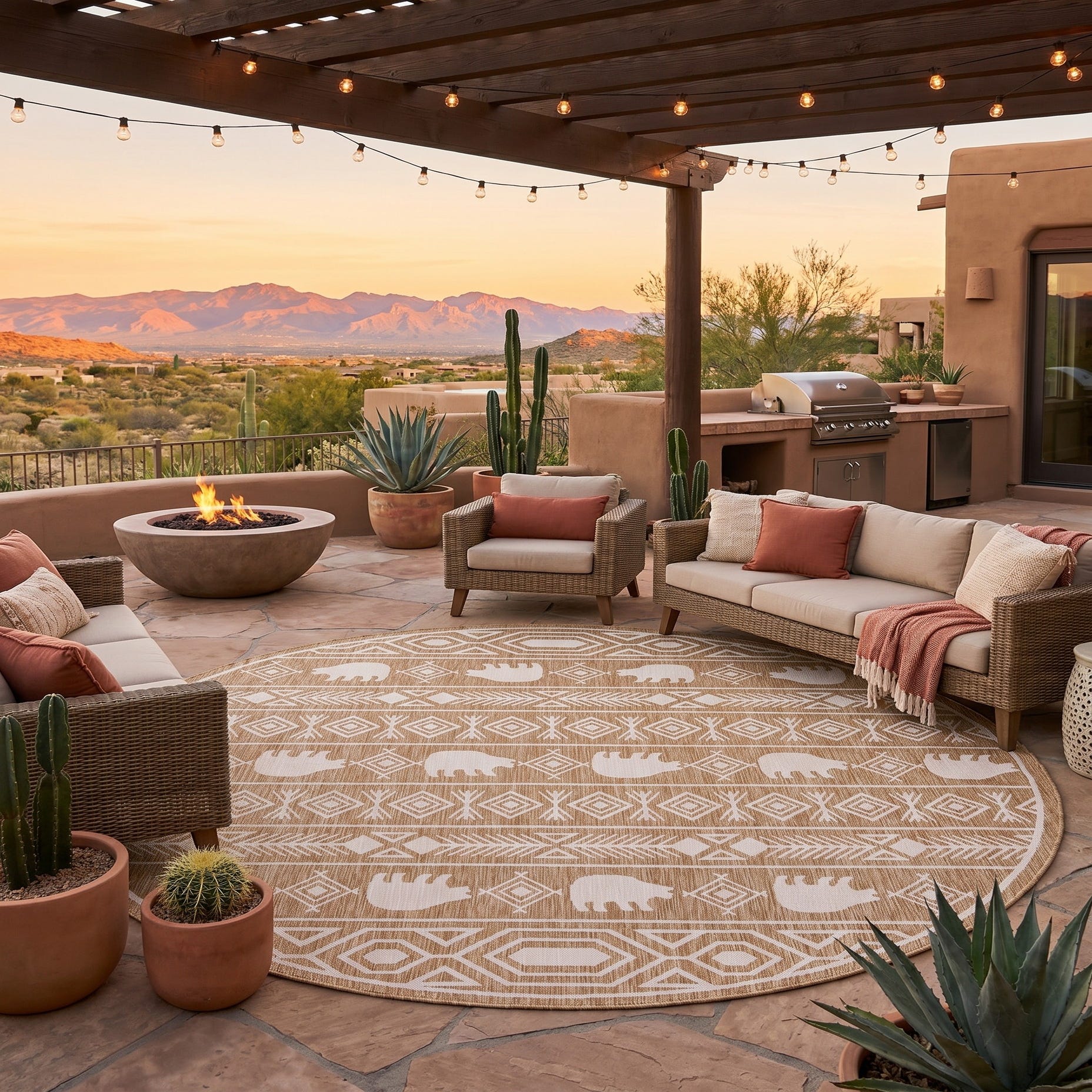10' x 10' Easy-Clean Southwestern Indoor / Outdoor Round Rug