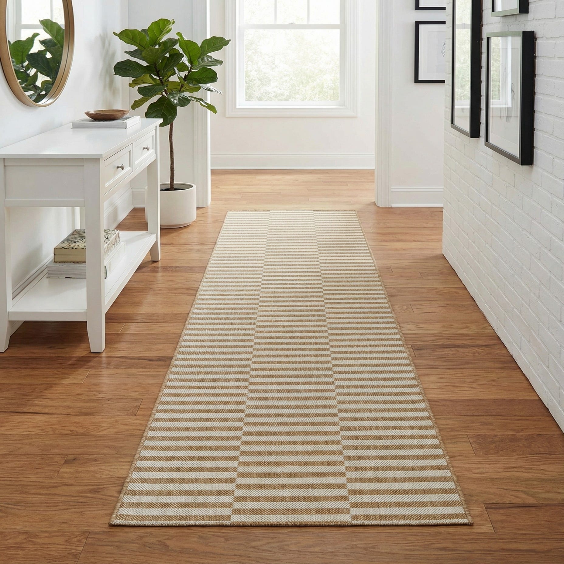 2' 7 x 10' Washable Striped Indoor / Outdoor Runner Rug