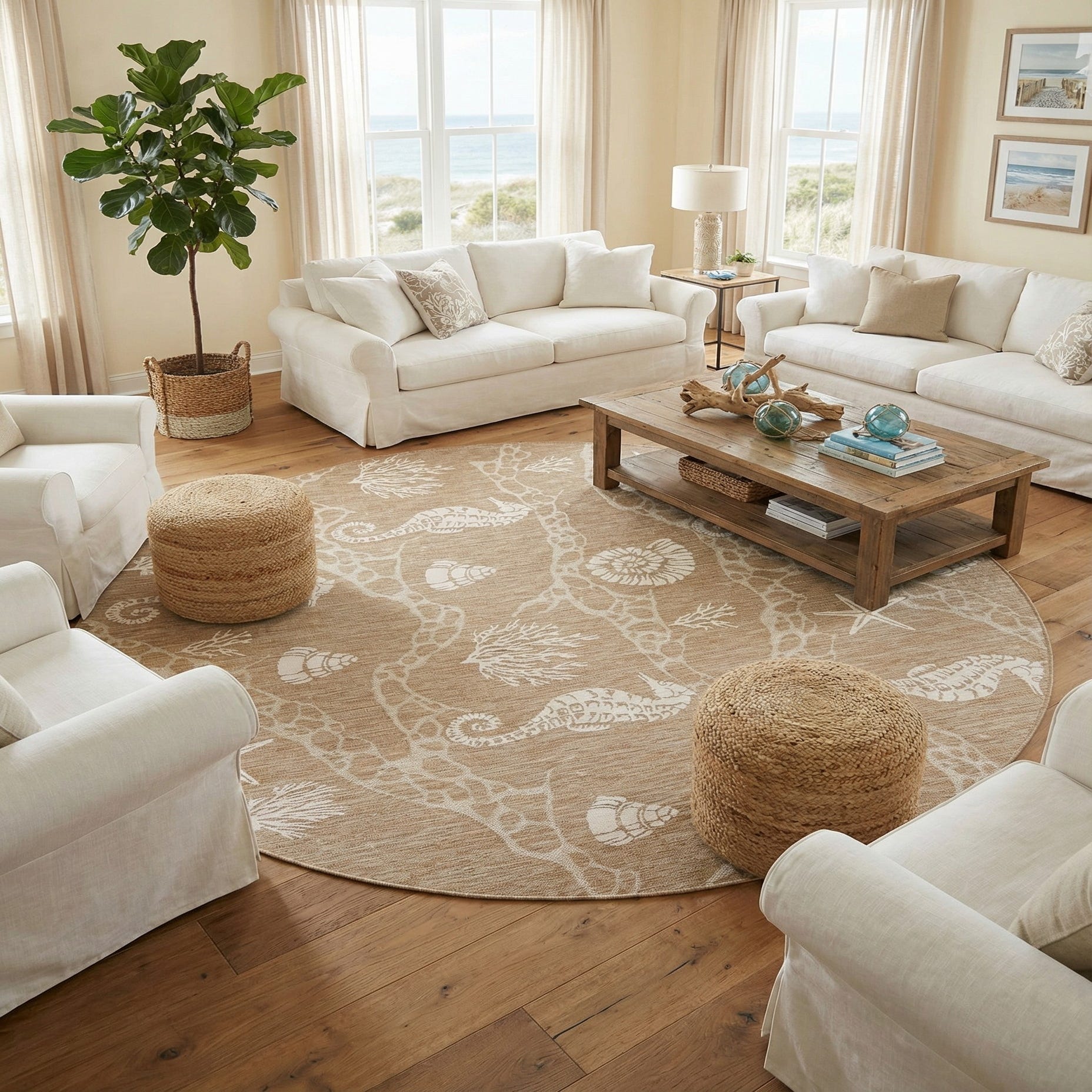 12' x 12' Washable Coastal Indoor / Outdoor Round Rug