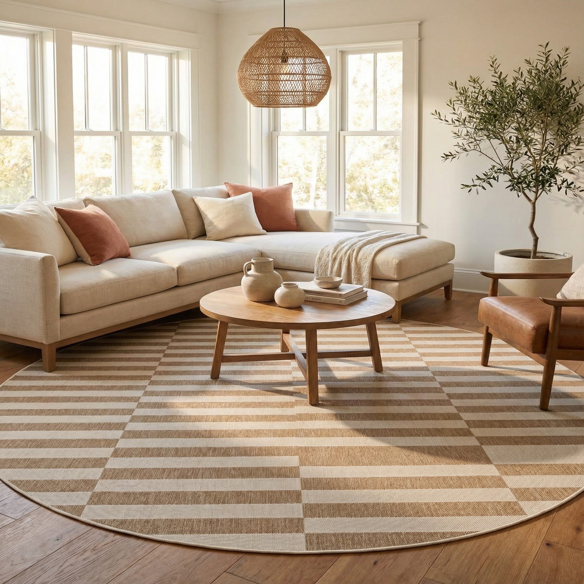 12' x 12' Washable Striped Indoor / Outdoor Round Rug